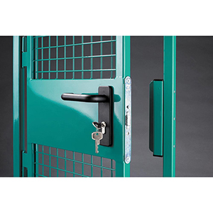 Trennwandschutzgitter Doppel-Flügeltüren ∙ Variabel und vielseitig einsetzbares Baukastensystem ∙ Maschenweite 40 x 40 x 3,8 mm ∙ Die solide Flachgitter-Schweißkonstruktion (C-Profil) garantiert höchste Sicherheit und ist im Selbstbau schnell und einfach montiert ∙ In Lager und Betrieb vielseitig einsetzbar als Absperrung, Magazinwand und Raumteiler ∙ Bodenabstand 100 mm · 2-flügelig, mit Laufschiene, Bodenführung und Anschlagpuffern, beidseitig öffnend ∙ Rahmen aus C-Profil 30 x 30 x 2 mm mit eingeschweißtem Drahtgitter 40 x 40 x 3,8 mm ∙ Querriegel als Schlosskasten Füllungen· Durch die Profilrahmen sind verschiedene Füllungen wie Acrylglas, Blech, beschichtete Spanplatte, das standardmäßige Drahtgitter, sowie Kombinationen der verschiedenen Füllungen möglich - bitte fragen Sie uns! Standard-LieferfarbeRAL 7037 staubgrauAuf Anfrage, ohne AufpreisRAL 5007 brillantblau, RAL 5018 türkisblau, RAL 5002 ultramarinblau, RAL 5010 enzianblau, RAL 7035 lichtgrau, RAL 5012 lichtblauWeitere RAL-Farben sowie feuerver
