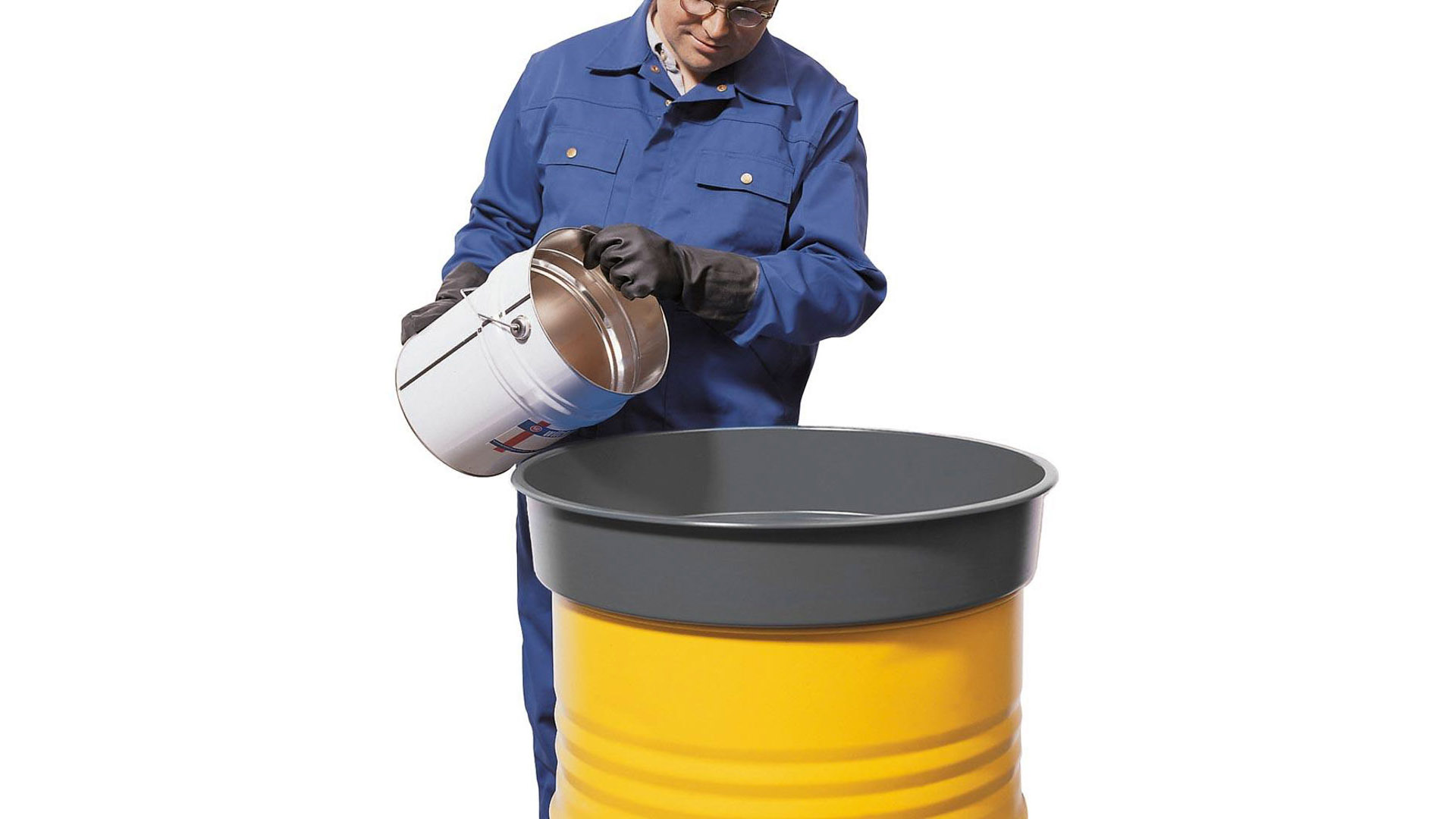 ∙ Sicheres Befüllen von 200-l-Fässern Ø 580 mm ∙ Volumen ca. 30 Liter ∙ Ø x Höhe 650 x 135 mm ∙ Stabile Stahlblechausführung, RAL 5010 enzianblau pulverbeschichtet