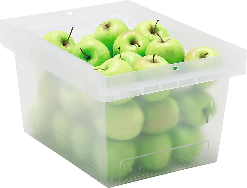 Produktinformationen "Lagerbehälter, Transportbehälter, lebensmittelecht, konisch, BxTxH 600x400x320 mm, Vol. 58 l, transparent, VE 2 Stück"