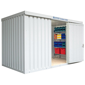 Isolierte Material-Lagercontainer mit Flügeltüren Einteilige Ausführung ∙ Optimal für die kostengünstige Lagerung temperatur- und feuchtigkeitsempfindlicher Produkte ∙ Die isolierte Außenhaut verhindert Schwitzwasserbildung und gleicht Temperaturschwankungen aus ∙ So lassen sich Produkte trocken und kondenswasserfrei lagern ∙ Die solide Konstruktion mit wärmedämmenden Sandwich-Elementen schützt empfindliches Lagergut vor Umwelteinflüssen ∙ Deckschalen aus brandverzinktem und beschichteten Stahl für hervorragenden Korrosionsschutz und lange Lebensdauer · Isolierung aus umweltfreundlichem, wassergetriebenen Polyurethanschaum · CE-Kennzeichnung mit Leistungserklärung für Standsicherheitsnachweis nach Eurocode 3 Ausgezeichnete Isoliereigenschaften und WärmedämmungWandelemente U = 0,47 W/(m²K)Dachdelemente U = 0,47 W/(m²K)Isolierter Boden U = 0,34 W/(m²K) Technische DatenMaterial: Stahlblech, verzinkt und lackiert in RAL 9002 grauweiß (Gegen Mehrpreis zusätzliche Außenwandlackierung möglich) Einsatzort: Innen- und Außenbereich Belastungsangaben·Windlastzone: 2 - Binnenland: 0,59 kN/m²· Alle Windzonen sind möglich· Schneelast auf Dach· Einzelcontainer: 220 kN/m²Kombinationen: 100 kN/m²Verkehrslast auf Boden: 500 kN/m²Erdbebenlasten: Erdbebenzon