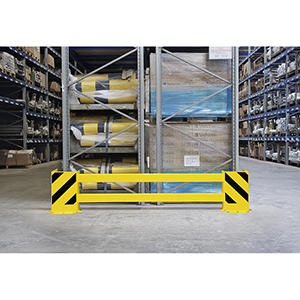 Produktinformationen "Regalschutz-Planken-Set, für Doppelregalreihe, Innenbereich, einstellbar von 1700-2100 mm, beschichtet in gelb, mit schwarzen Streifen"