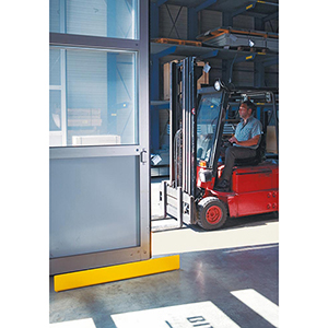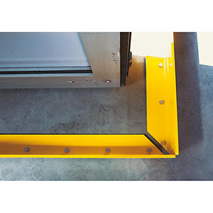 ∙ Für den Inneneinsatz · Kräftiger und massiver Stahlwinkel · Sichert kritische Sperrflächen und vermeidet teure Instandsetzungen ∙ Einsatz z.B. an Lager- und Brandschutztüren zum Schutz der Türbereiche vor Staplerfahrern die in diesen Bereich einfahren, während sich die Tür öffnet ∙ Zusätzlich kann dieses Schrammbord als Anfahrstopp für Gabelstapler eingesetzt werden, zum Fixieren des Anhaltepunktes für das Bestücken oder die Entnahme aus Rollregalen oder als Rangierhilfe bei der Warenübergabe ∙ Abgerundete Ecken ∙ Mit Gehrungsschnitt, 45°, für Winkelmontage ∙ Zum Aufdübeln (Dübellöcher 14 mm) ∙ Befestigungsmaterial bitte separat mitbestellen