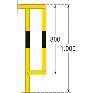 Produktinformationen "Rohrschutz, Wand- und Bodenmontage, Stahlrohr 48 mm, BxTxH 350x300x1000 mm, feuerverzinkt, gelb besc hichtet, schwarze Streifen, mit Boden/Wandplatten"