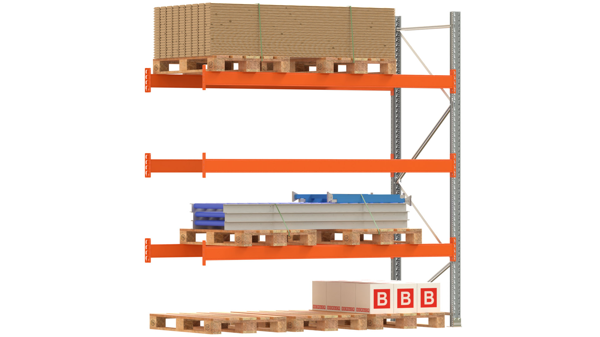 Palettenregal ARTUS - Anbaufeld - Breite 278,5 cm - Höhe 300 cm - Tiefe 110 cm - 3 Träger Ebenen