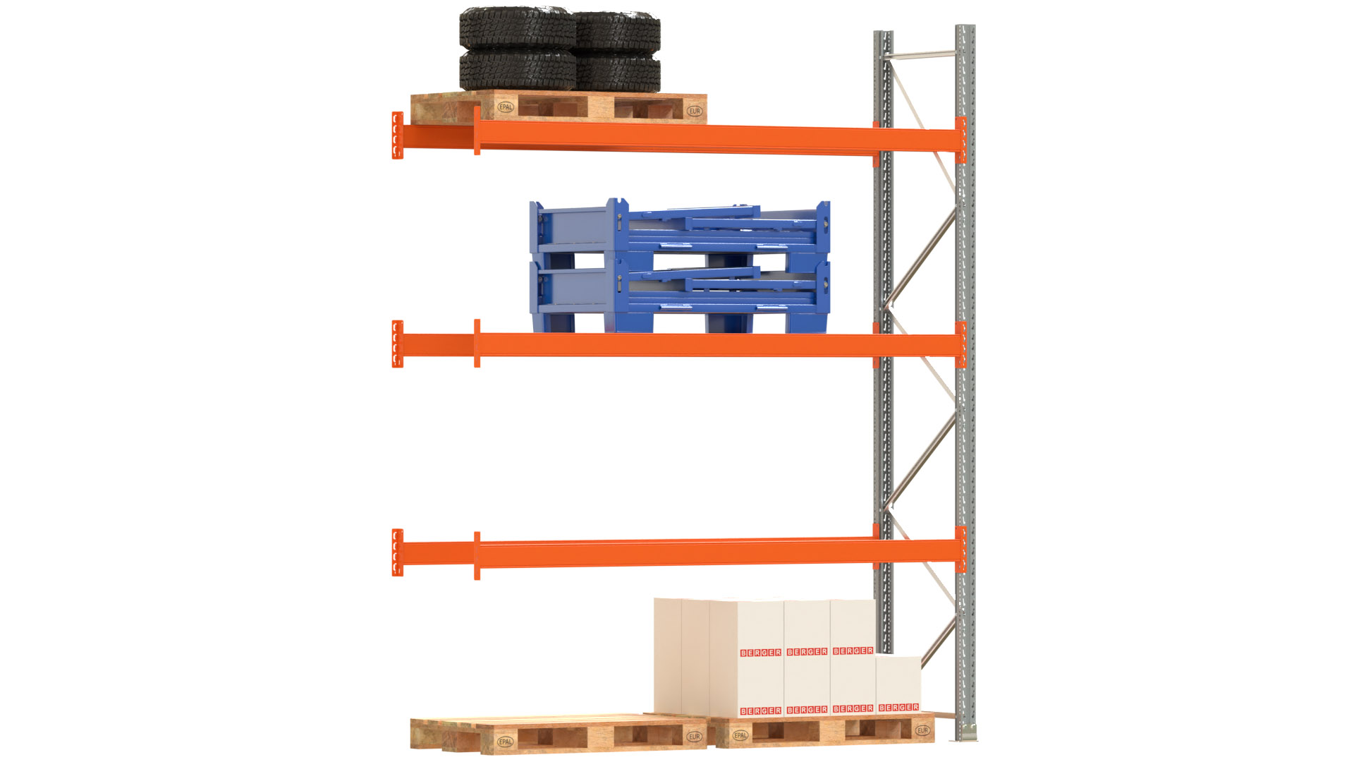 Palettenregal ARTUS - Anbaufeld - Breite 278,5 cm - Höhe 350 cm - Tiefe 80 cm - 3 Träger Ebenen