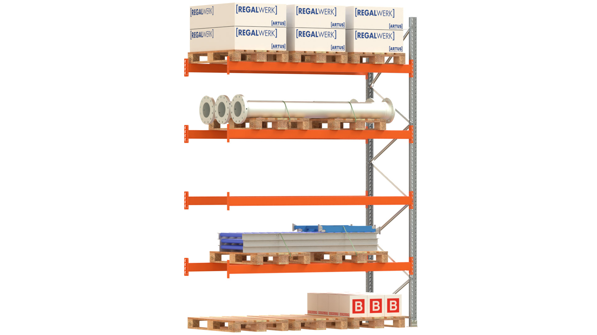 Produktinformationen "Palettenregal ARTUS - Anbaufeld - Breite 278,5 cm - Höhe 400 cm - Tiefe 110 cm - 4 Träger Ebenen"