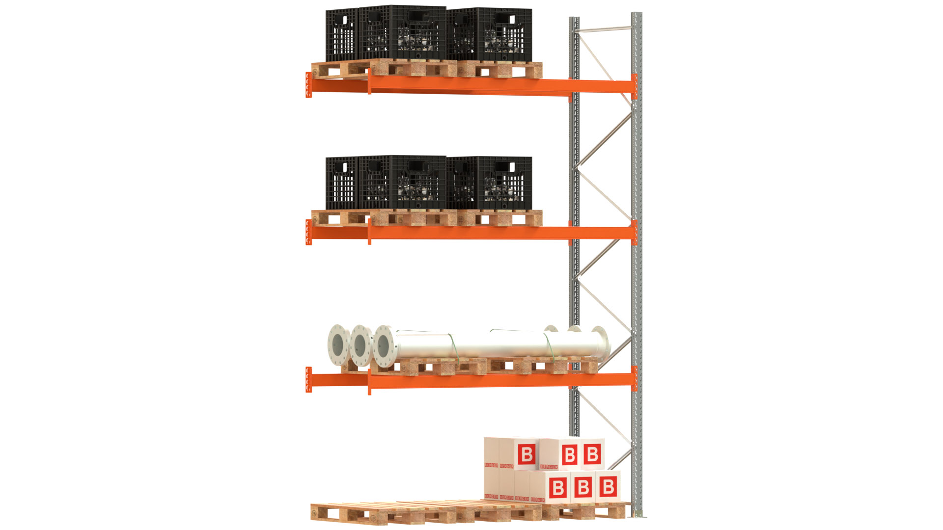 Palettenregal ARTUS - Anbaufeld - Breite 278,5 cm - Höhe 450 cm - Tiefe 110 cm - 3 Träger Ebenen