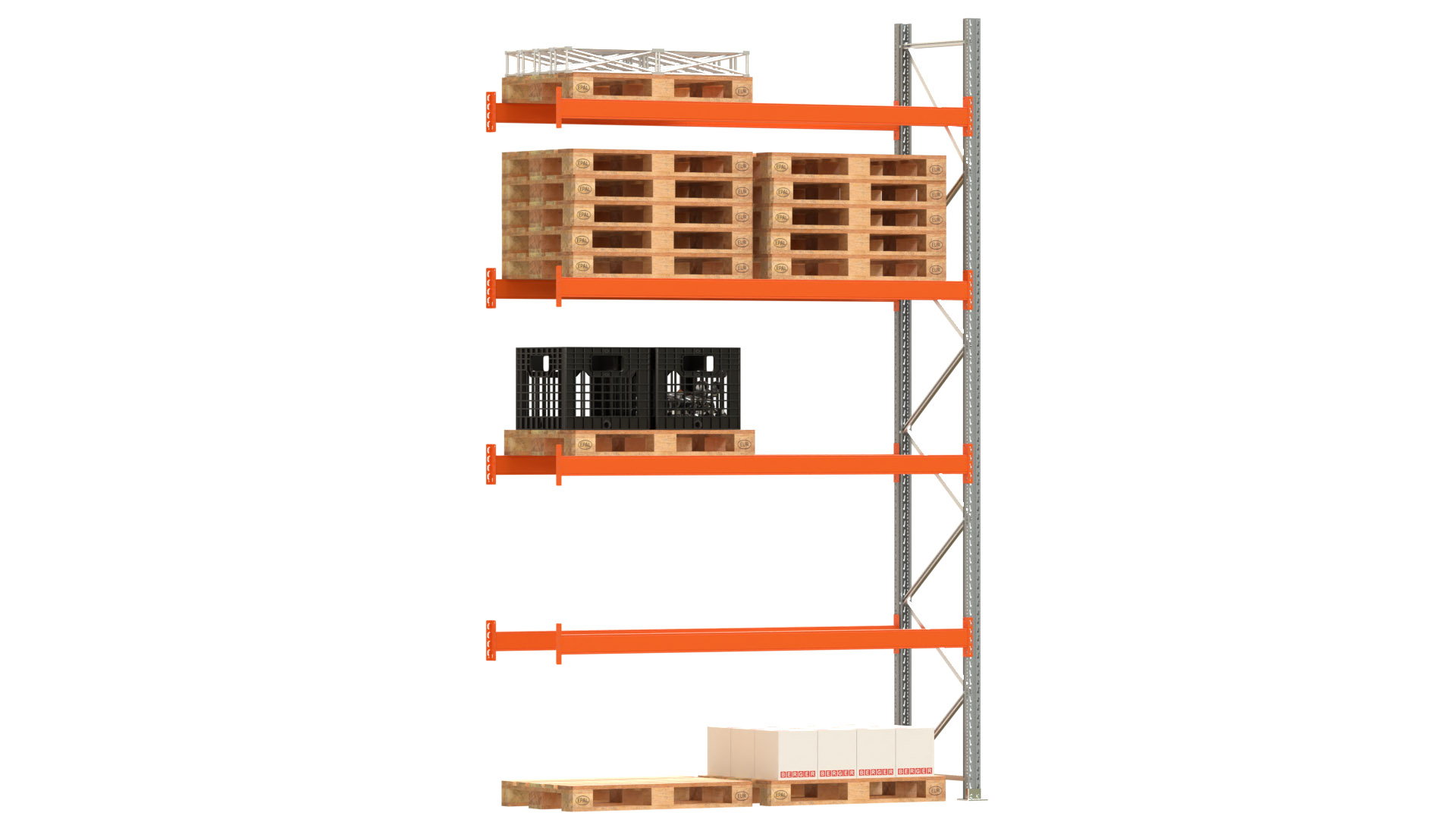 Palettenregal ARTUS - Anbaufeld - Breite 278,5 cm - Höhe 450 cm - Tiefe 80 cm - 4 Träger Ebenen