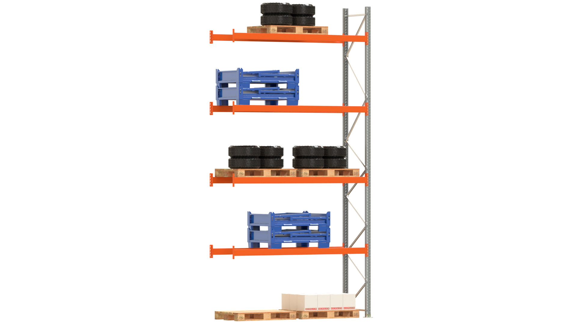 Produktinformationen "Palettenregal ARTUS - Anbaufeld - Breite 278,5 cm - Höhe 550 cm - Tiefe 80 cm - 4 Träger Ebenen"