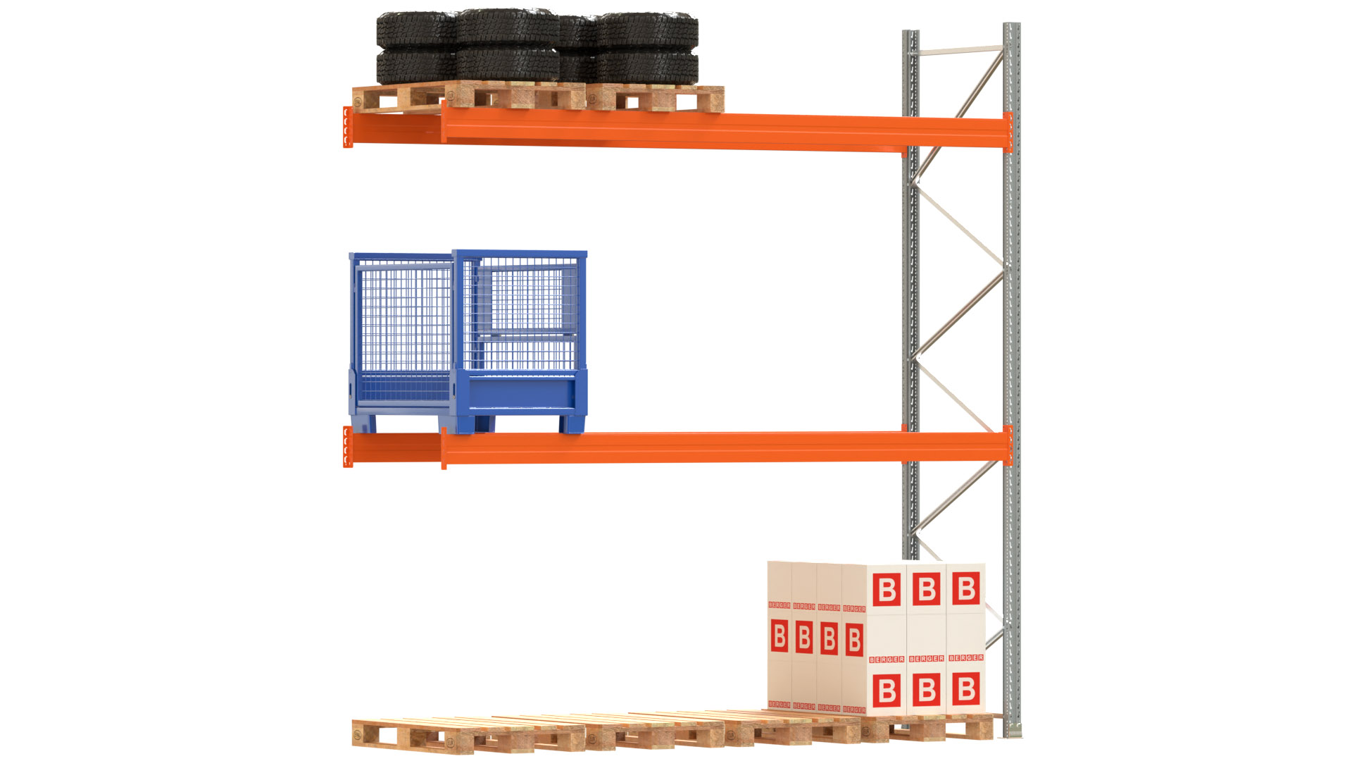 Palettenregal ARTUS - Anbaufeld - Breite 368,5 cm - Höhe 400 cm - Tiefe 110 cm - 2 Träger Ebenen