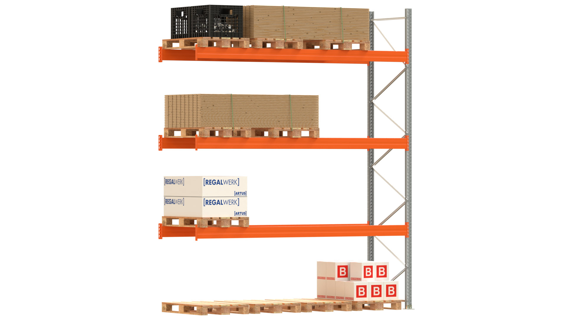 Produktinformationen "Palettenregal ARTUS - Anbaufeld - Breite 368,5 cm - Höhe 450 cm - Tiefe 110 cm - 3 Träger Ebenen"