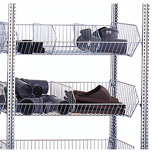 · Das Regal ist ausgestattet mit 4 Fachebenen mit Gitterkörben, 2 Fachebenen mit Spanplatten (Stufenbalken und Einlegeboden Spanplatte 16 mm, P4) und 8 Trenngittern für die Gitterkörbe