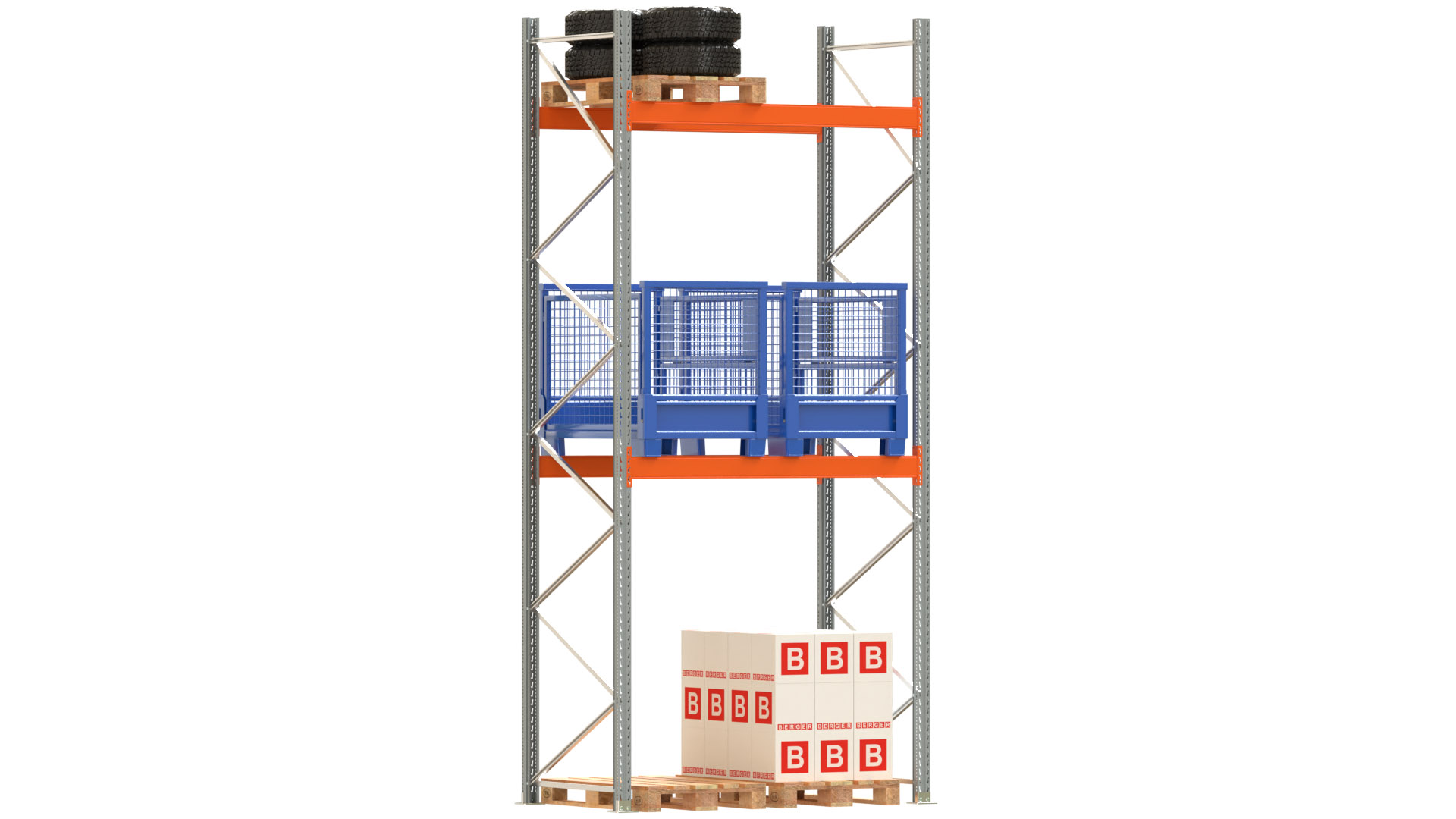 Palettenregal ARTUS - Breite 207 cm - Höhe 450 cm - Tiefe 110 cm - 2 Träger-Ebenen - Fachlast 3000 kg - 6 Palettenstellplätze