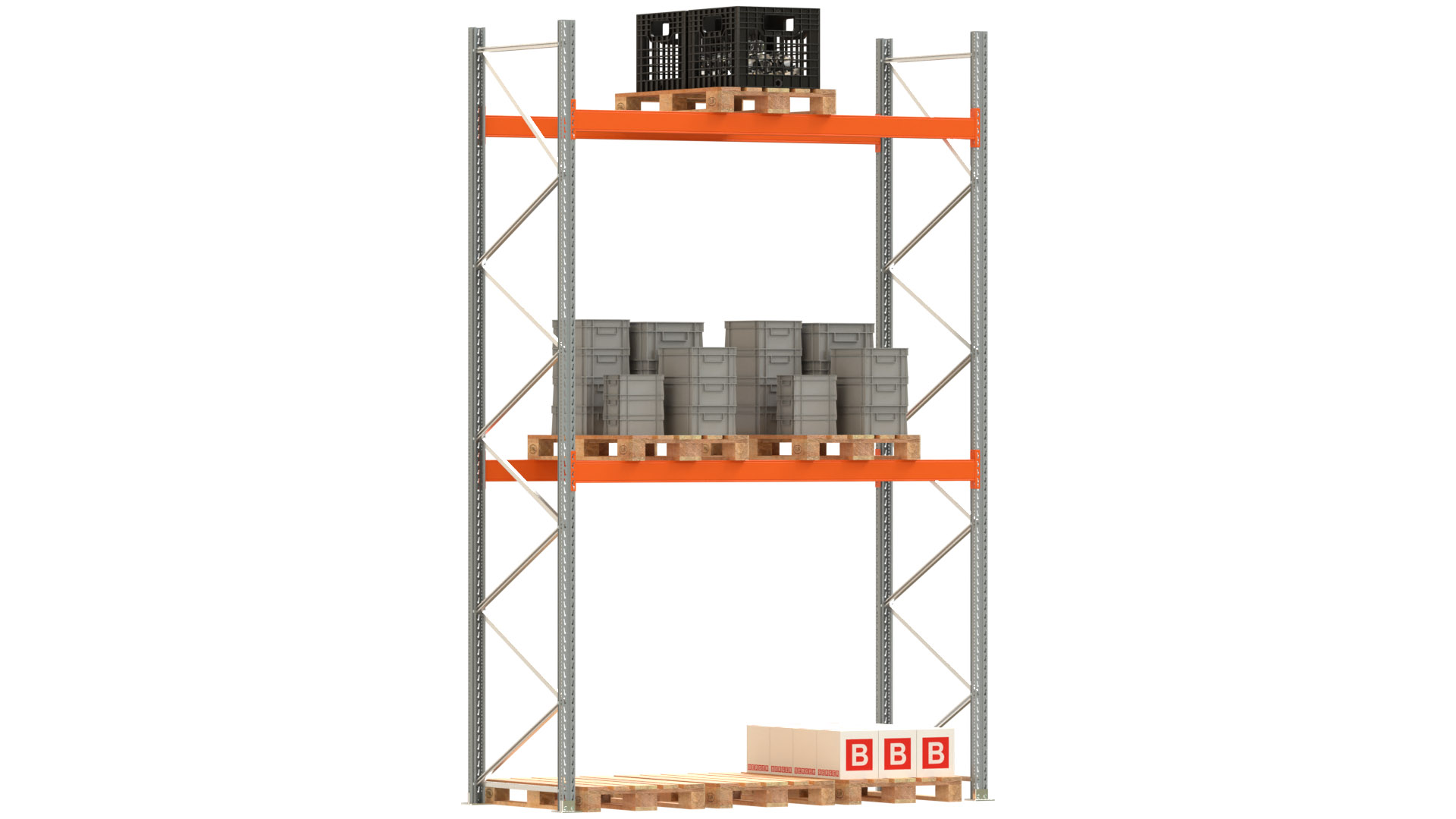 Palettenregal ARTUS - Breite 287 cm - Höhe 450 cm - Tiefe 110 cm - 2 Träger-Ebenen - Fachlast 3000 kg - 9 Palettenstellplätze