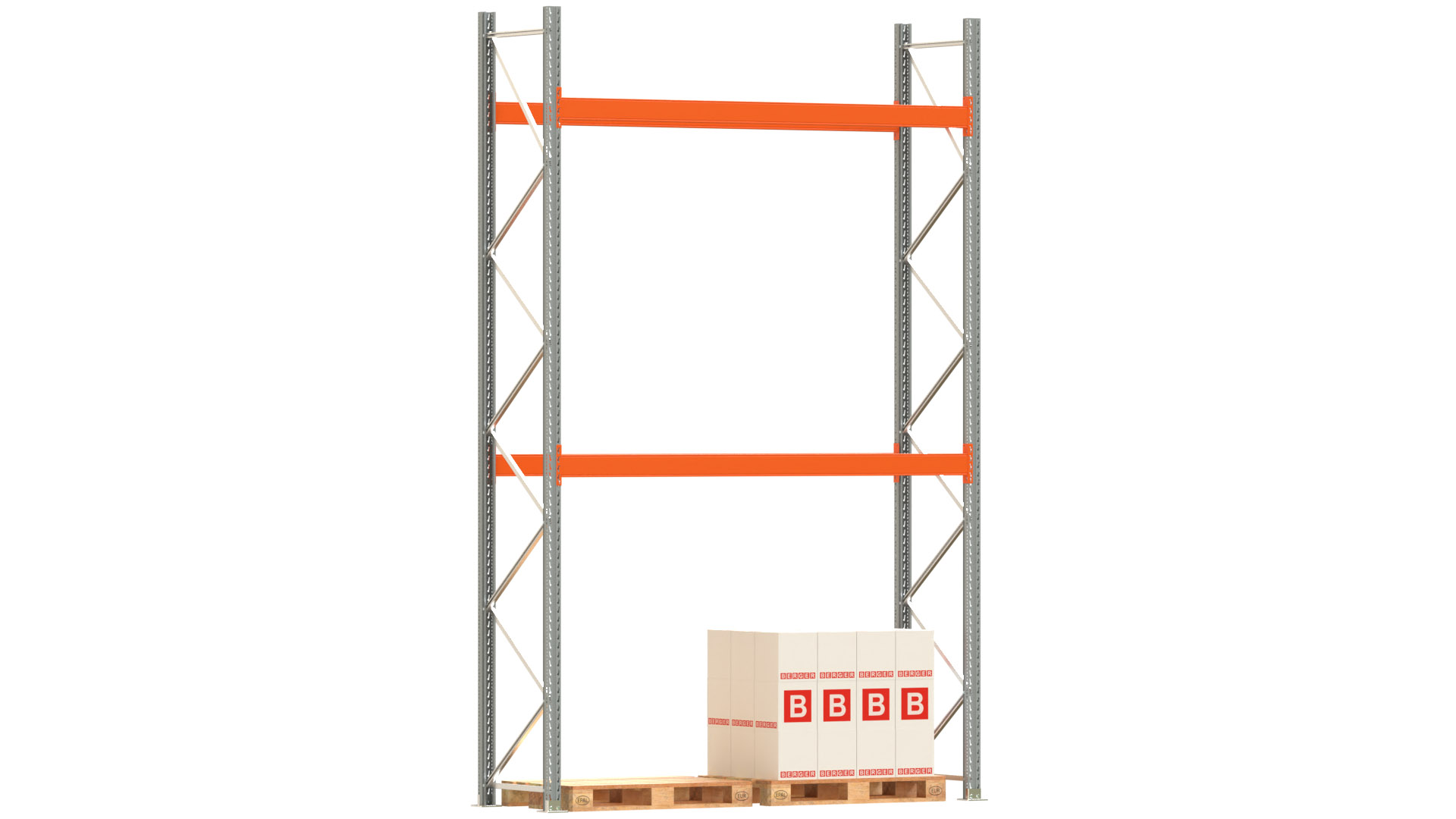 Palettenregal ARTUS - Breite 287 cm - Höhe 450 cm - Tiefe 80 cm - 2 Träger-Ebenen - Fachlast 3000 kg - 6 Palettenstellplätze