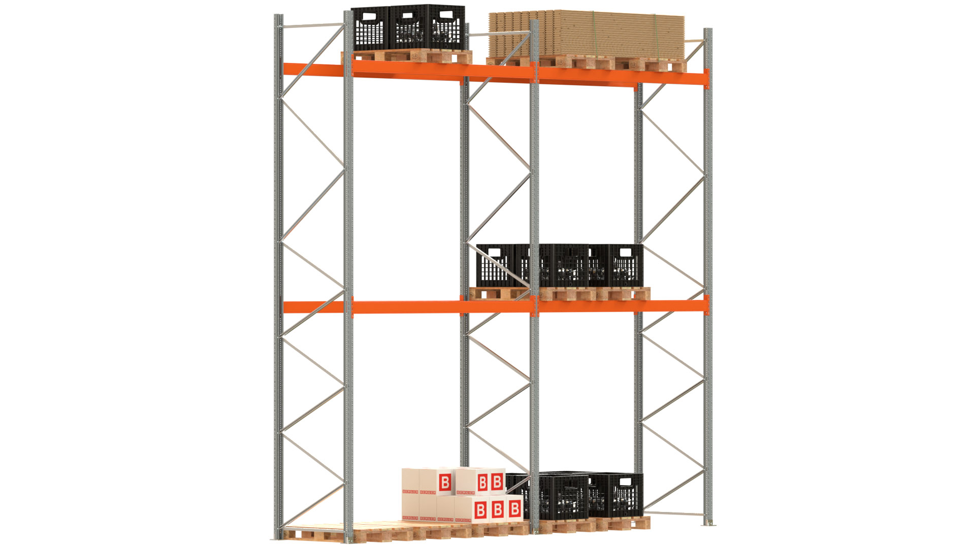 Palettenregal ARTUS - Breite 565,5 cm - Höhe 550 cm - Tiefe 110 cm - 2 Träger-Ebenen - Fachlast 3000 kg - 18 Palettenstellplätze