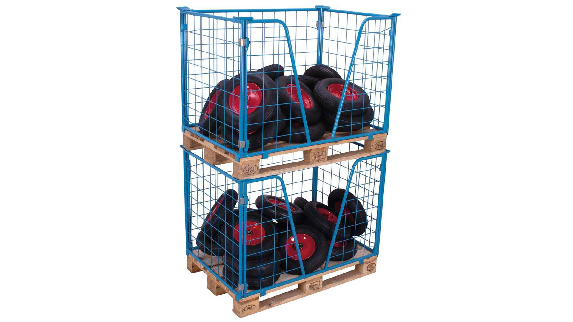 Produktinformationen "Palettenaufsatzrahmen für Europalette - 750 kg - Höhe 1.200 mm - 3-fach stapelbar - Gitter m. V-Ausschnitt - lichtblau"