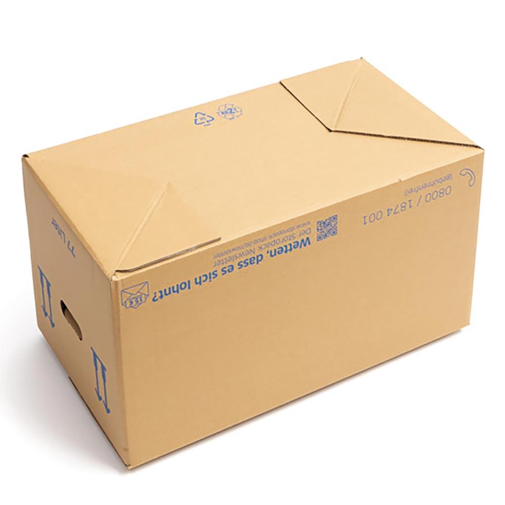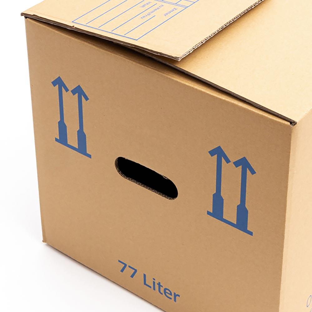 · Umzugskartons aus starker 2-wellige Wellpappe · Boden mit einem Automatikboden ausgestattet, wodurch sich der Umzugkarton schnell aufstellen lässt · Griffanstanzungen sind zum Einklappen geeignet, damit beim Tragen die Grifflöcher nicht sofort einreissen · Deckelklappen ineinander steckbar · Beschriftungsfelder aufgedruckt · VE 10 Stück
