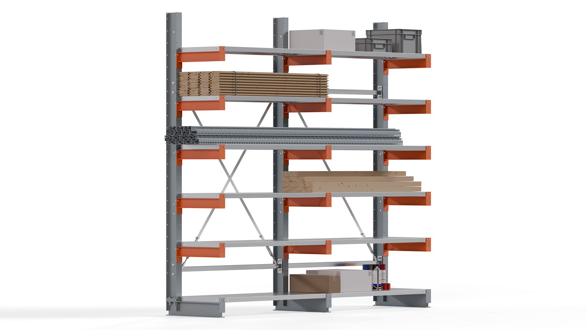 Kragarmregal KARL basic - Effiziente und wirtschaftliche Lagerhaltung Das Kragarmregal KARL basic sorgt für Ordnung und Übersichtlichkeit in der Lagerhaltung. Ideal für die platzsparende Lagerung von schweren, langen oder sperrigen Gütern, ermöglicht es eine strukturierte Einlagerung und gewährleistet einen schnellen und einfachen Zugriff auf das Material - eine optimale Lösung für anspruchsvolle Anforderungen.Hochwertige Verarbeitung für maximale Stabilität Das Kragarmregal zeichnet sich durch eine beständige und widerstandsfähige Konstruktion aus. Gefertigt aus hochwertigem Stahl , werden Einzelkomponenten wie Ständerprofile, Ständerfüße, Kragarme und Ständerverbindungen zu einem stabilen Gesamtsystem verschraubt . Die sandgestrahlte Oberfläche der Stahlprofile ist in einem elektrostatischen Verfahren mit Industrielack in Silbergrau (RAL 7001) und Reinorange (RAL 2004) beschichtet.Vielseitigkeit und Flexibilität für individuelle Anforderungen Kragarmregale bieten höchste Flexibilität, um unterschiedlichen Lageranforderungen gerecht zu werden. Auf Anfrage sind Höhen bis 12 Meter und Nutztiefen bis 3 Meter möglich, sowohl für einseitige als auch doppelseitige Ausführungen . Damit steht eine Lösung für nahezu jede Lagerumgebung zur Verfügung. Dank perfekt aufeinander abgestimmter Regalkomponenten und Zubehörteile lässt sich das Kragarmregalsystem flexibel an unterschiedliche Anforderungen anpassen. Lagergut mit variierenden oder sperrigen Maßen kann problemlos eingelagert werden. Auch bei unterschiedlichen räumlichen Gegebenheiten bietet das System vielseitige Lösungen. Für eine maßgeschneiderte Planung steht ein erfahrenes Beratungsteam zur Verfügung, um die ideale Konfiguration zu finden.Dies ist ein Beispielangebot. Gerne erstellen wir Ihnen ein individuelles Angebot nach Ihren Bedürfnissen. Melden Sie sich bei uns telefonisch oder per Mail für ein auf Sie zugeschnittenes Regalsystem. Eigenschaften: · Einseitiges Kragarmregal KARL basic by Regalwerk · Regalausführung: Regalreihe · inkl. Stahlfachböden: 6 Stk. · Anzahl Felder: 2 Stk. · Einfach zu montierendes Kragarmregal · Speziell für die Lagerung von Langgut · Ständer aus IPE-Profil 120, beidseitig gelocht für einseitige/doppelseitige Nutzung · Kragarme: IPE-Profil 80, mit Lochung für Abrollsicherung · Im Rastermaß von 100 mm verstellbar · Stabile Bodenverankerung durch mitgelieferte Schwerlastanker (Spreizanker) · Anzahl Lagerebenen: 6 Stk. * · Farbe Ständer: Silbergrau (RAL 7001) · Farbe Kragarme: Reinorange (RAL 2004) · Max. Traglast je Kragarm: 870 kg · Max. Ständerlast je Seite: 2.100 kg * *Lagerebenen inklusive Fußlagerung. *Alle angegebenen Traglasten gelten für gleichmäßig verteilte Lasten.Abmessungen: · Höhe: 2.500 mm · Breite: 2.560 mm · Tiefe: 620 mm · Feldbreite: 1.280 mm · Nutztiefe: 500 mm Ihre Vorteile: · Geordnete Einlagerung Ihres Langmaterials · Schneller Zugriff auf Lagerware · Reduzierung von Lagerplatz