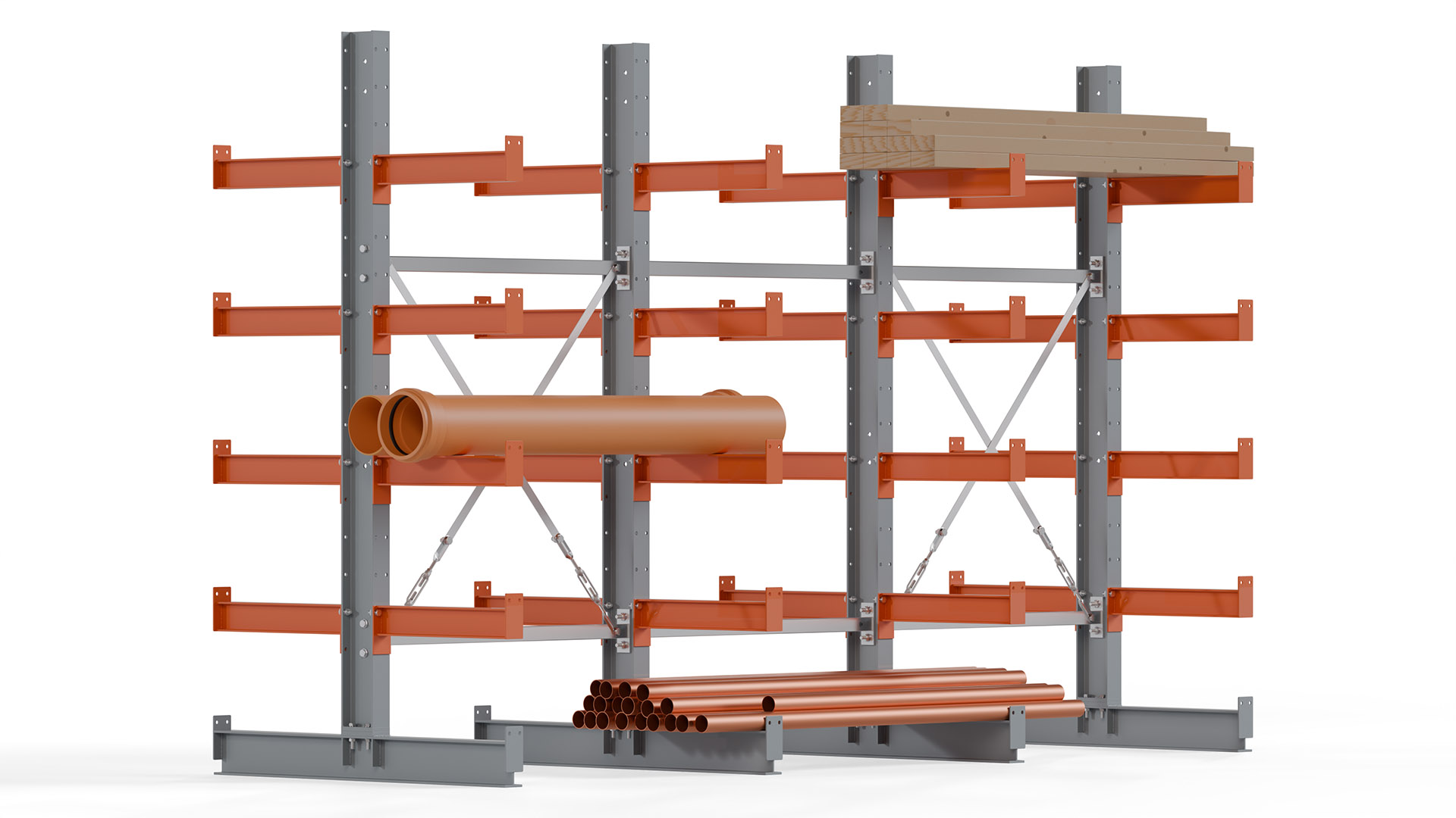 Kragarmregale bieten höchste Flexibilität, um unterschiedlichen Lageranforderungen gerecht zu werden. Auf Anfrage sind Höhen bis 12 Meter und Nutztiefen bis 3 Meter möglich, sowohl für einseitige als auch doppelseitige Ausführungen. Damit steht eine Lösung für nahezu jede Lagerumgebung zur Verfügung.