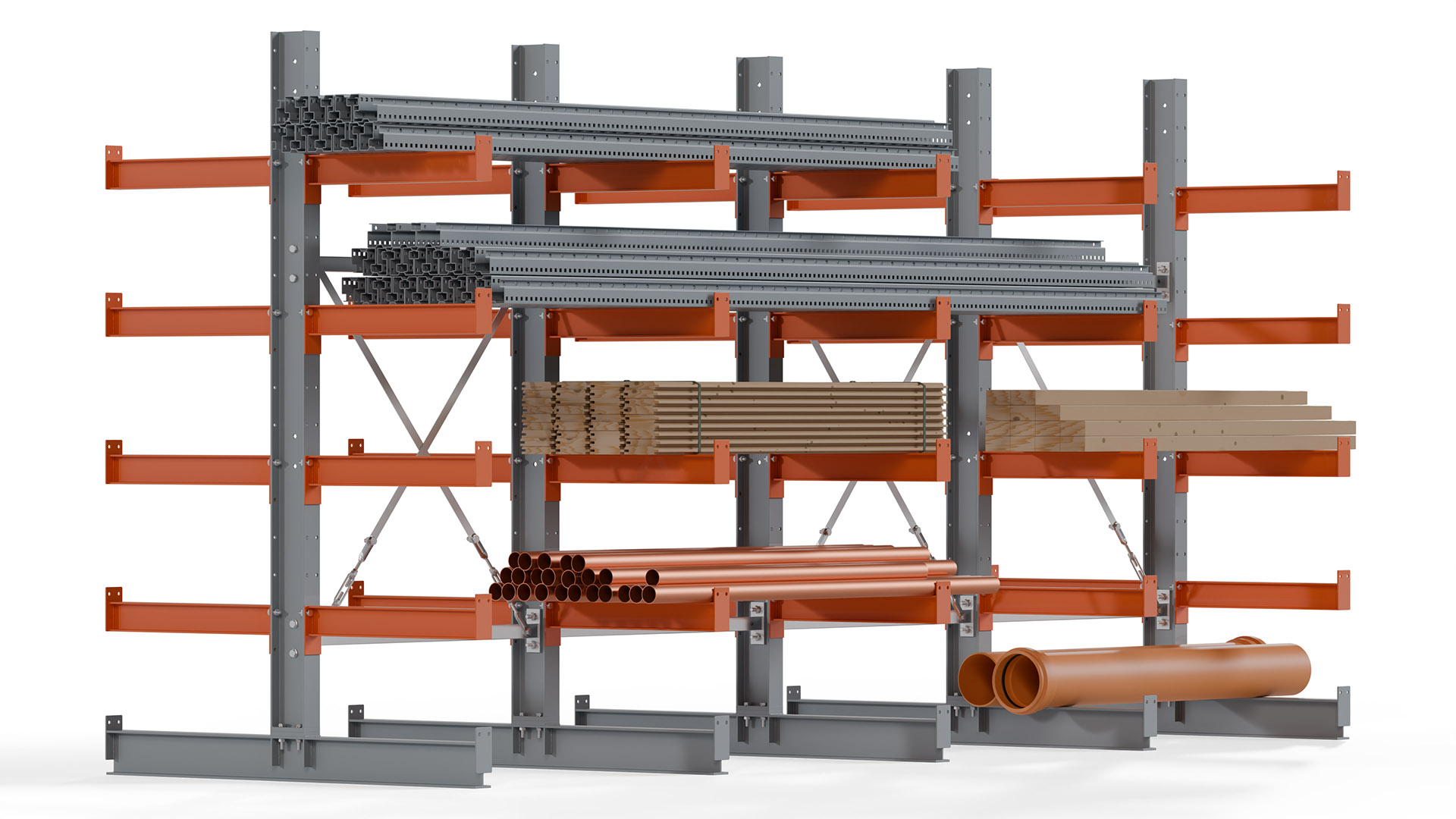 Kragarmregale bieten höchste Flexibilität, um unterschiedlichen Lageranforderungen gerecht zu werden. Auf Anfrage sind Höhen bis 12 Meter und Nutztiefen bis 3 Meter möglich, sowohl für einseitige als auch doppelseitige Ausführungen. Damit steht eine Lösung für nahezu jede Lagerumgebung zur Verfügung.