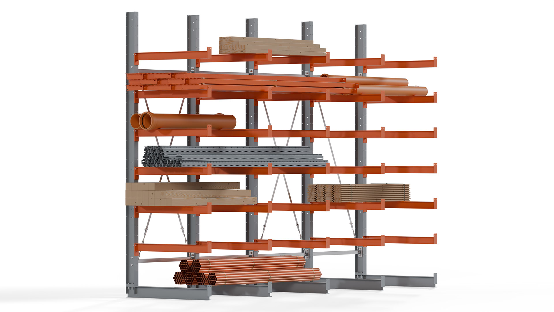 Kragarmregale bieten höchste Flexibilität, um unterschiedlichen Lageranforderungen gerecht zu werden. Auf Anfrage sind Höhen bis 12 Meter und Nutztiefen bis 3 Meter möglich, sowohl für einseitige als auch doppelseitige Ausführungen. Damit steht eine Lösung für nahezu jede Lagerumgebung zur Verfügung.
