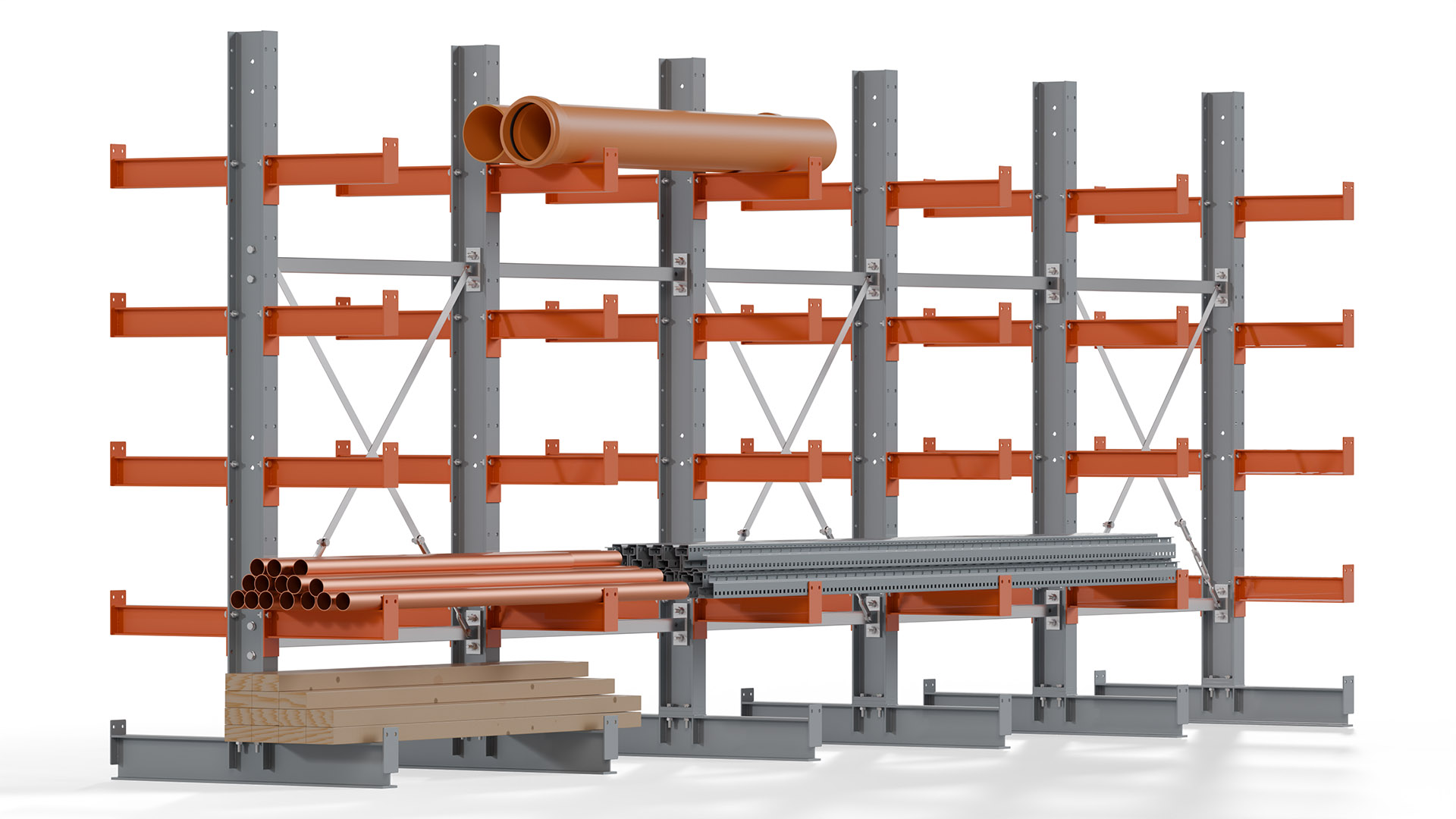 Kragarmregale bieten höchste Flexibilität, um unterschiedlichen Lageranforderungen gerecht zu werden. Auf Anfrage sind Höhen bis 12 Meter und Nutztiefen bis 3 Meter möglich, sowohl für einseitige als auch doppelseitige Ausführungen. Damit steht eine Lösung für nahezu jede Lagerumgebung zur Verfügung.