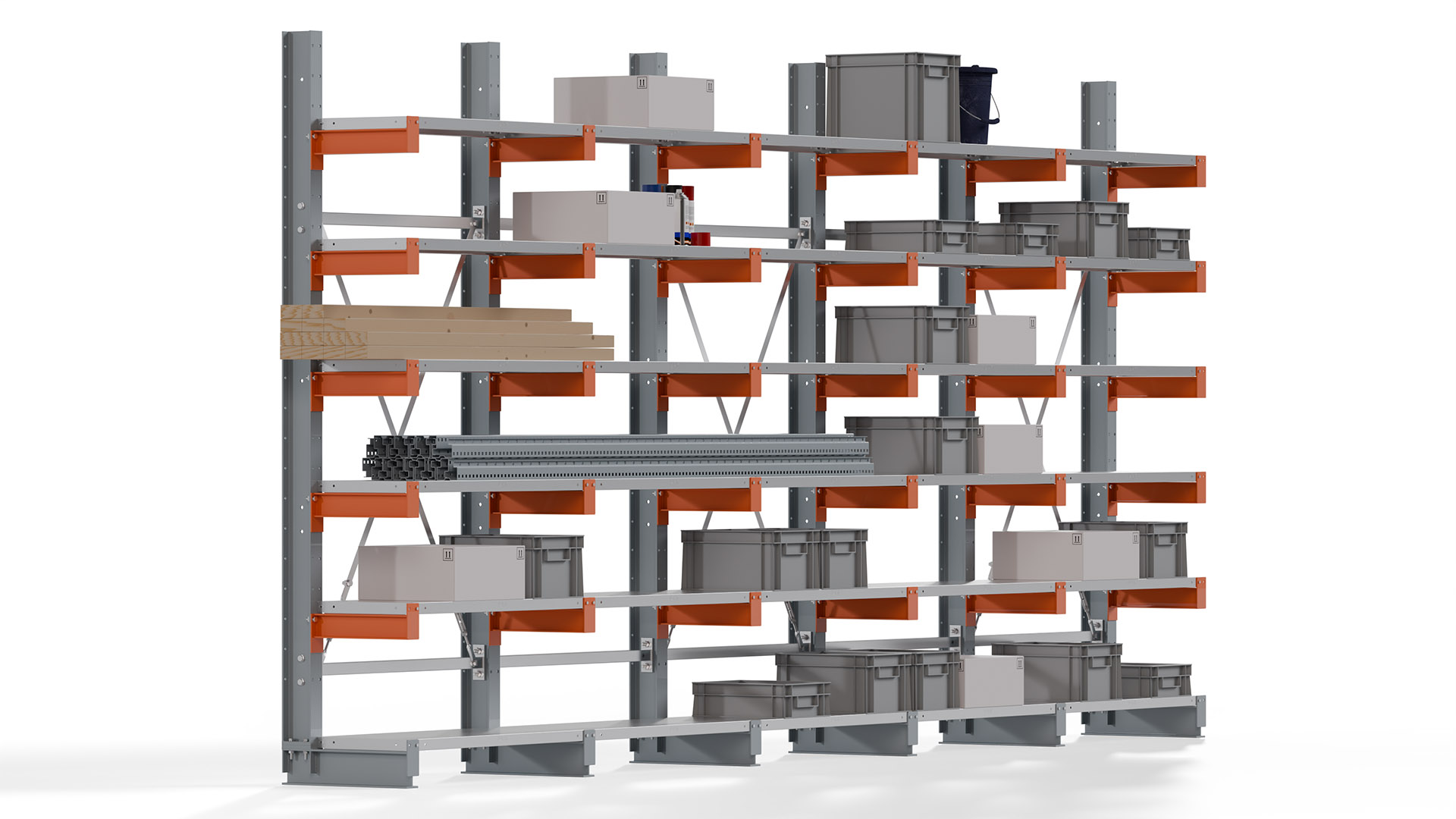 Kragarmregal KARL basic - Effiziente und wirtschaftliche Lagerhaltung Das Kragarmregal KARL basic sorgt für Ordnung und Übersichtlichkeit in der Lagerhaltung. Ideal für die platzsparende Lagerung von schweren, langen oder sperrigen Gütern, ermöglicht es eine strukturierte Einlagerung und gewährleistet einen schnellen und einfachen Zugriff auf das Material - eine optimale Lösung für anspruchsvolle Anforderungen.Hochwertige Verarbeitung für maximale Stabilität Das Kragarmregal zeichnet sich durch eine beständige und widerstandsfähige Konstruktion aus. Gefertigt aus hochwertigem Stahl , werden Einzelkomponenten wie Ständerprofile, Ständerfüße, Kragarme und Ständerverbindungen zu einem stabilen Gesamtsystem verschraubt . Die sandgestrahlte Oberfläche der Stahlprofile ist in einem elektrostatischen Verfahren mit Industrielack in Silbergrau (RAL 7001) und Reinorange (RAL 2004) beschichtet.Vielseitigkeit und Flexibilität für individuelle Anforderungen Kragarmregale bieten höchste Flexibilität, um unterschiedlichen Lageranforderungen gerecht zu werden. Auf Anfrage sind Höhen bis 12 Meter und Nutztiefen bis 3 Meter möglich, sowohl für einseitige als auch doppelseitige Ausführungen . Damit steht eine Lösung für nahezu jede Lagerumgebung zur Verfügung. Dank perfekt aufeinander abgestimmter Regalkomponenten und Zubehörteile lässt sich das Kragarmregalsystem flexibel an unterschiedliche Anforderungen anpassen. Lagergut mit variierenden oder sperrigen Maßen kann problemlos eingelagert werden. Auch bei unterschiedlichen räumlichen Gegebenheiten bietet das System vielseitige Lösungen. Für eine maßgeschneiderte Planung steht ein erfahrenes Beratungsteam zur Verfügung, um die ideale Konfiguration zu finden.Dies ist ein Beispielangebot. Gerne erstellen wir Ihnen ein individuelles Angebot nach Ihren Bedürfnissen. Melden Sie sich bei uns telefonisch oder per Mail für ein auf Sie zugeschnittenes Regalsystem. Eigenschaften: · Einseitiges Kragarmregal KARL basic by Regalwerk · Regalausführung: Regalreihe · inkl. Stahlfachböden: 6 Stk. · Anzahl Felder: 5 Stk. · Einfach zu montierendes Kragarmregal · Speziell für die Lagerung von Langgut · Ständer aus IPE-Profil 120, beidseitig gelocht für einseitige/doppelseitige Nutzung · Kragarme: IPE-Profil 80, mit Lochung für Abrollsicherung · Im Rastermaß von 100 mm verstellbar · Stabile Bodenverankerung durch mitgelieferte Schwerlastanker (Spreizanker) · Anzahl Lagerebenen: 6 Stk. * · Farbe Ständer: Silbergrau (RAL 7001) · Farbe Kragarme: Reinorange (RAL 2004) · Max. Traglast je Kragarm: 1.100 kg · Max. Ständerlast je Seite: 2.500 kg * *Lagerebenen inklusive Fußlagerung. *Alle angegebenen Traglasten gelten für gleichmäßig verteilte Lasten.Abmessungen: · Höhe: 2.500 mm · Breite: 5.000 mm · Tiefe: 520 mm · Feldbreite: 1.000 mm · Nutztiefe: 400 mm Ihre Vorteile: · Geordnete Einlagerung Ihres Langmaterials · Schneller Zugriff auf Lagerware · Reduzierung von Lagerplatz
