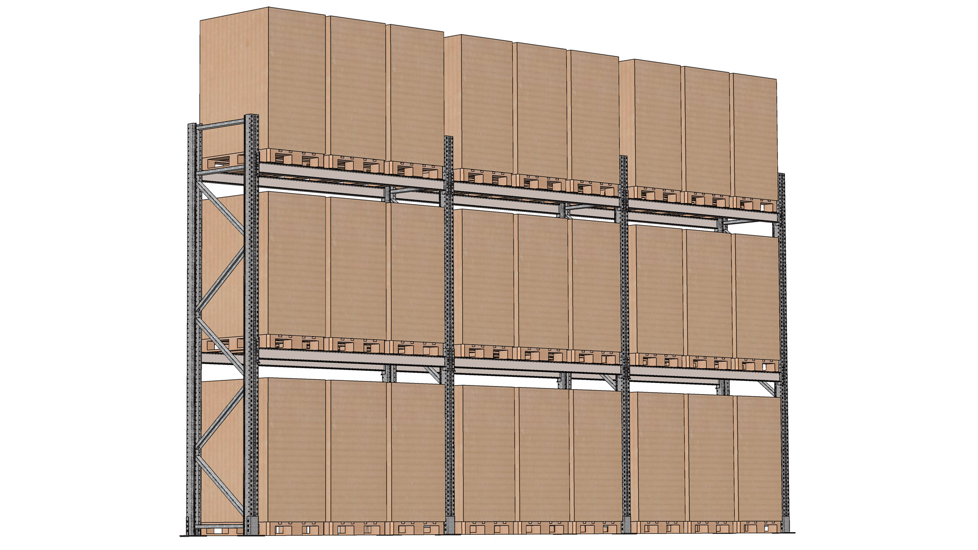 ∙ Feuerverzinkte Oberflächenbeschichtung ∙ Für die Lagerung von Europaletten mit einer Palettenhöhe von max. 2530 mm ∙ Palettengewicht bis 1000kg ∙ Warmgewalzte IPE-Holme mit 5 Agaffenhaken ∙ Schraubenanker inkl. Folienpatrone ∙ Mindestanforderung: 3 Felder mit mindestens je 2 Holmebenen