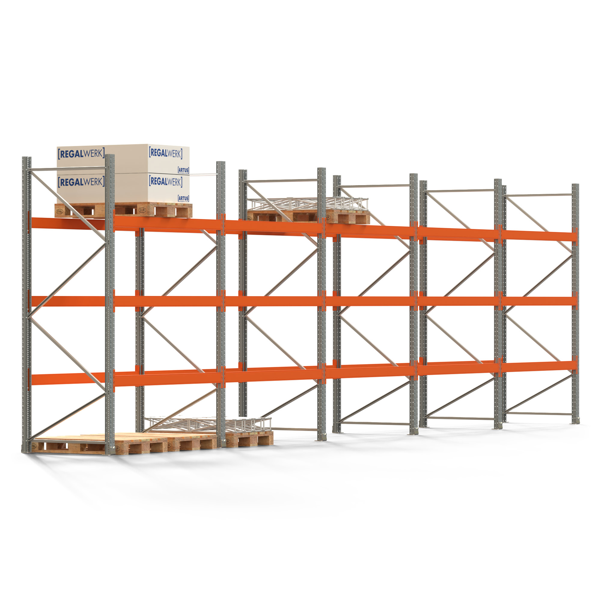 Palettenregal ARTUS - Breite 1001 cm - Höhe 300 cm - Tiefe 110 cm - 3 Träger-Ebenen - Fachlast 2000 kg - 40 Palettenstellplätze