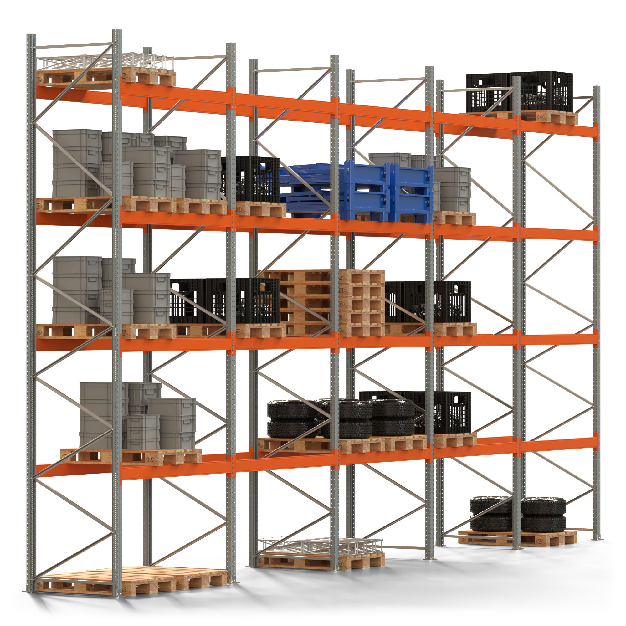Palettenregal ARTUS - Breite 1001 cm - Höhe 550 cm - Tiefe 110 cm - 4 Träger-Ebenen - Fachlast 3000 kg - 50 Palettenstellplätze