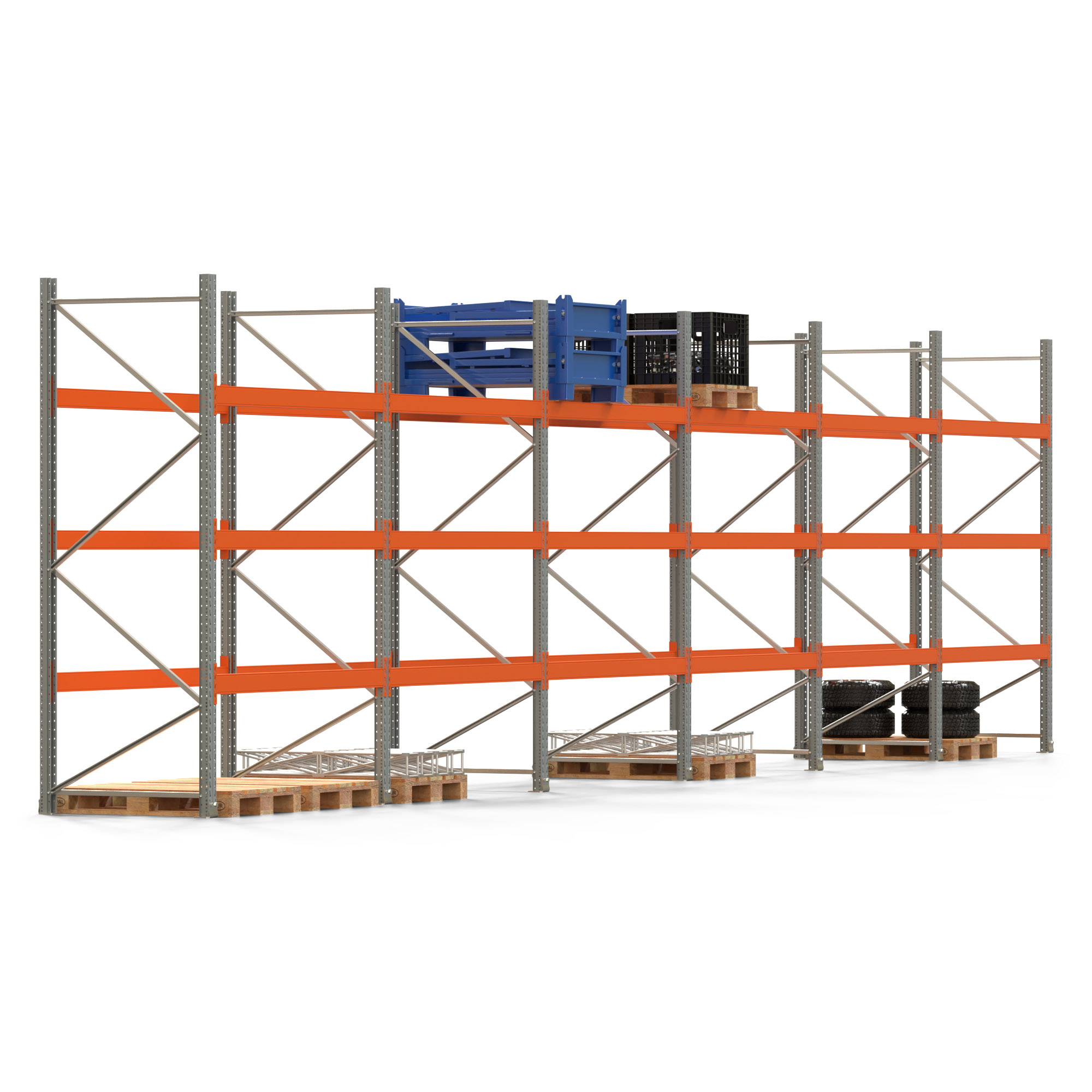 Palettenregal ARTUS - Breite 1199,5 cm - Höhe 300 cm - Tiefe 110 cm - 3 Träger-Ebenen - Fachlast 2000 kg - 48 Palettenstellplätze