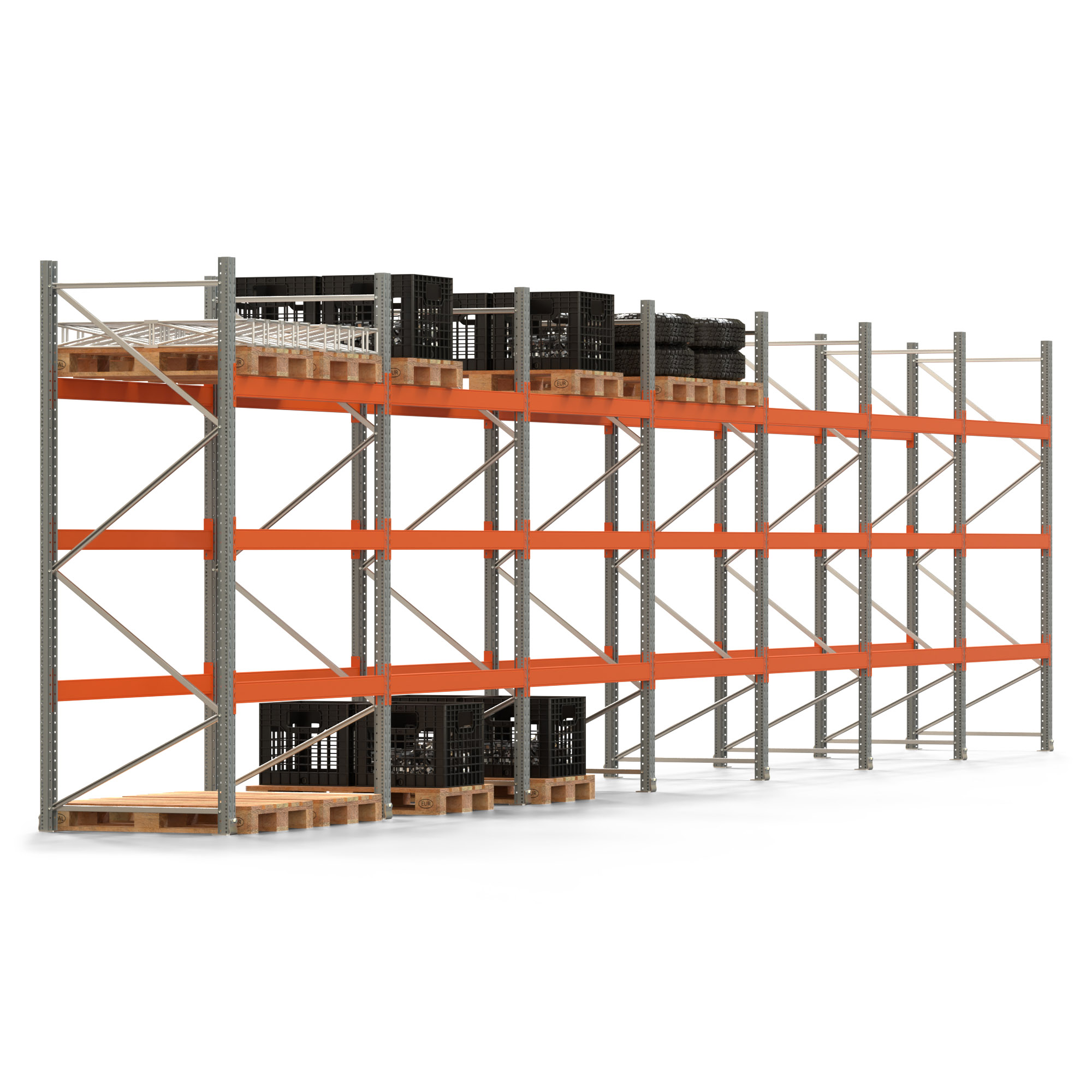 Palettenregal ARTUS - Breite 1398 cm - Höhe 300 cm - Tiefe 110 cm - 3 Träger-Ebenen - Fachlast 2000 kg - 56 Palettenstellplätze