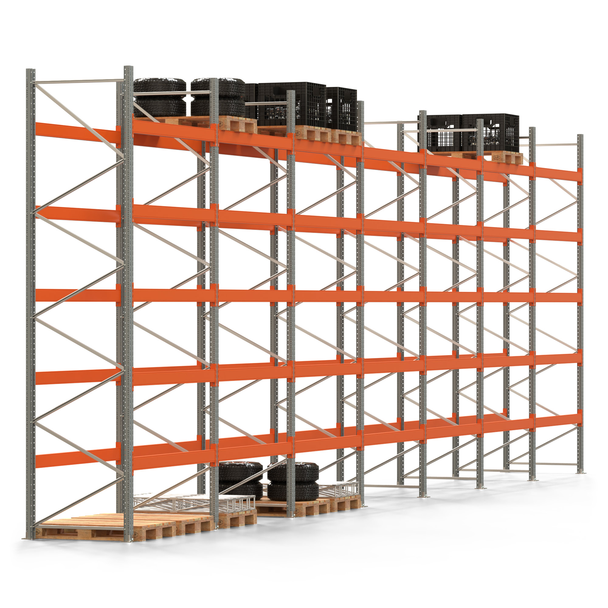 Palettenregal ARTUS - Breite 1398 cm - Höhe 450 cm - Tiefe 110 cm - 2 Träger-Ebenen - Fachlast 2000 kg - 42 Palettenstellplätze