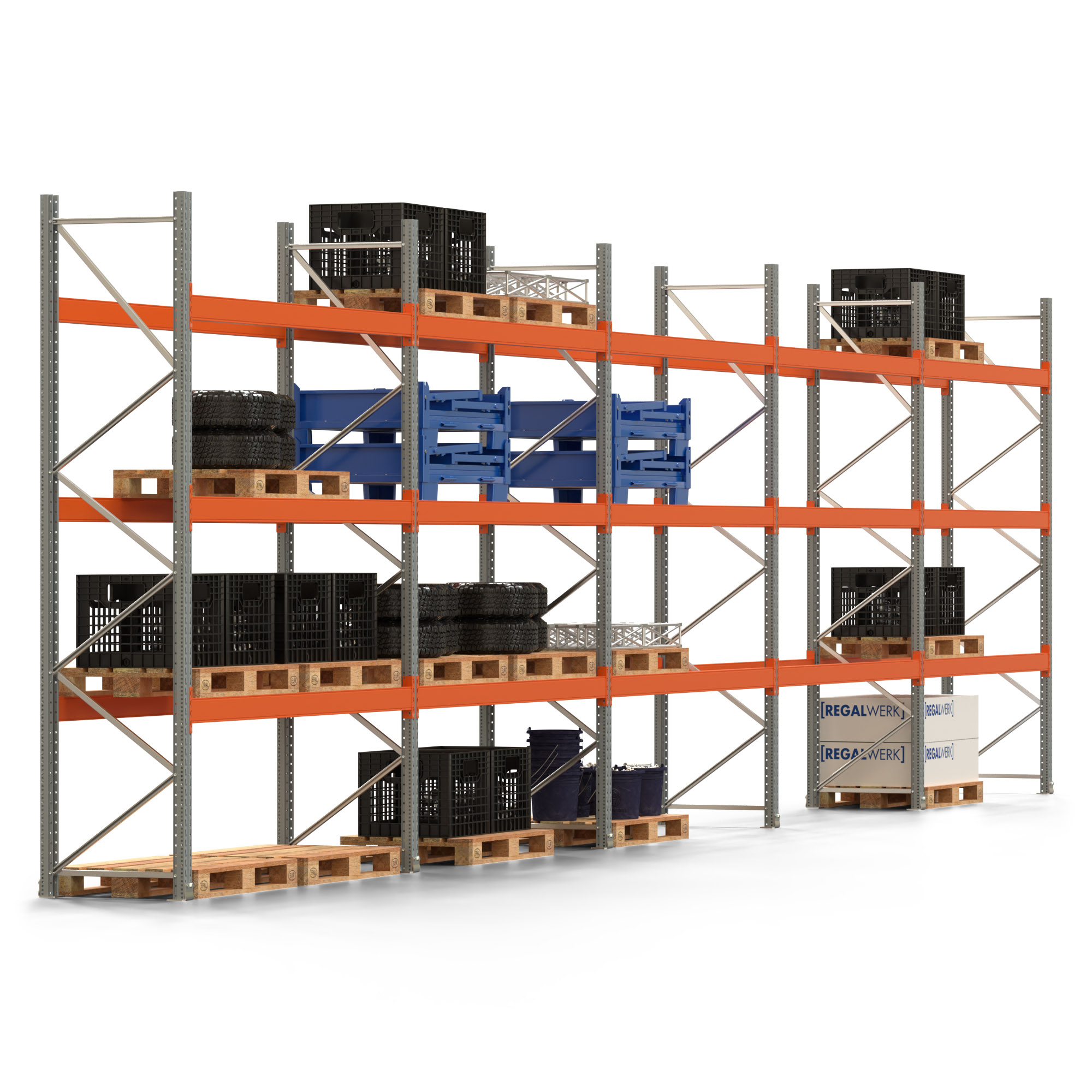 Palettenregal ARTUS - Breite 1401 cm - Höhe 350 cm - Tiefe 80 cm - 3 Träger-Ebenen - Fachlast 3000 kg - 40 Palettenstellplätze