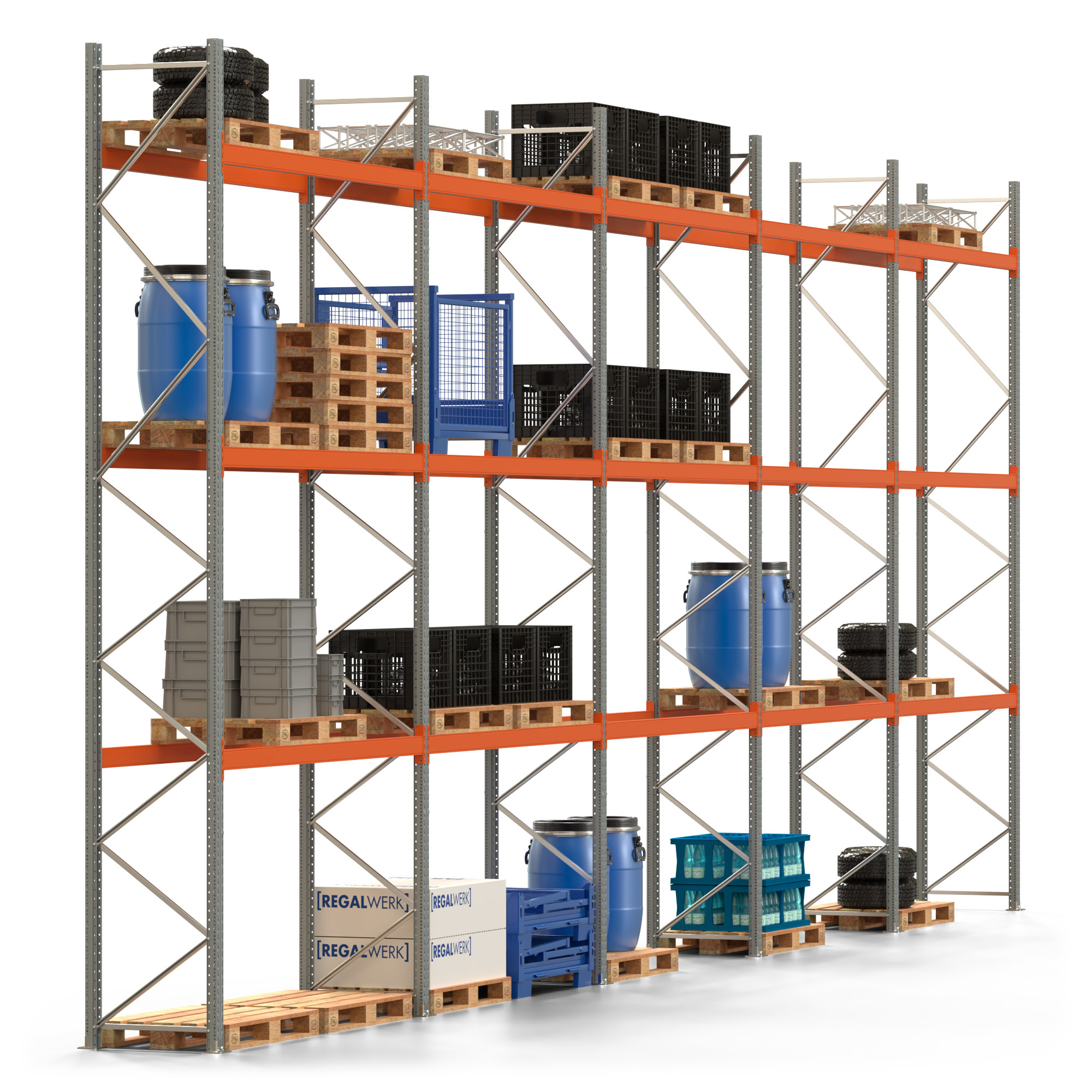 Palettenregal ARTUS - Breite 1401 cm - Höhe 550 cm - Tiefe 80 cm - 3 Träger-Ebenen - Fachlast 2000 kg - 40 Palettenstellplätze