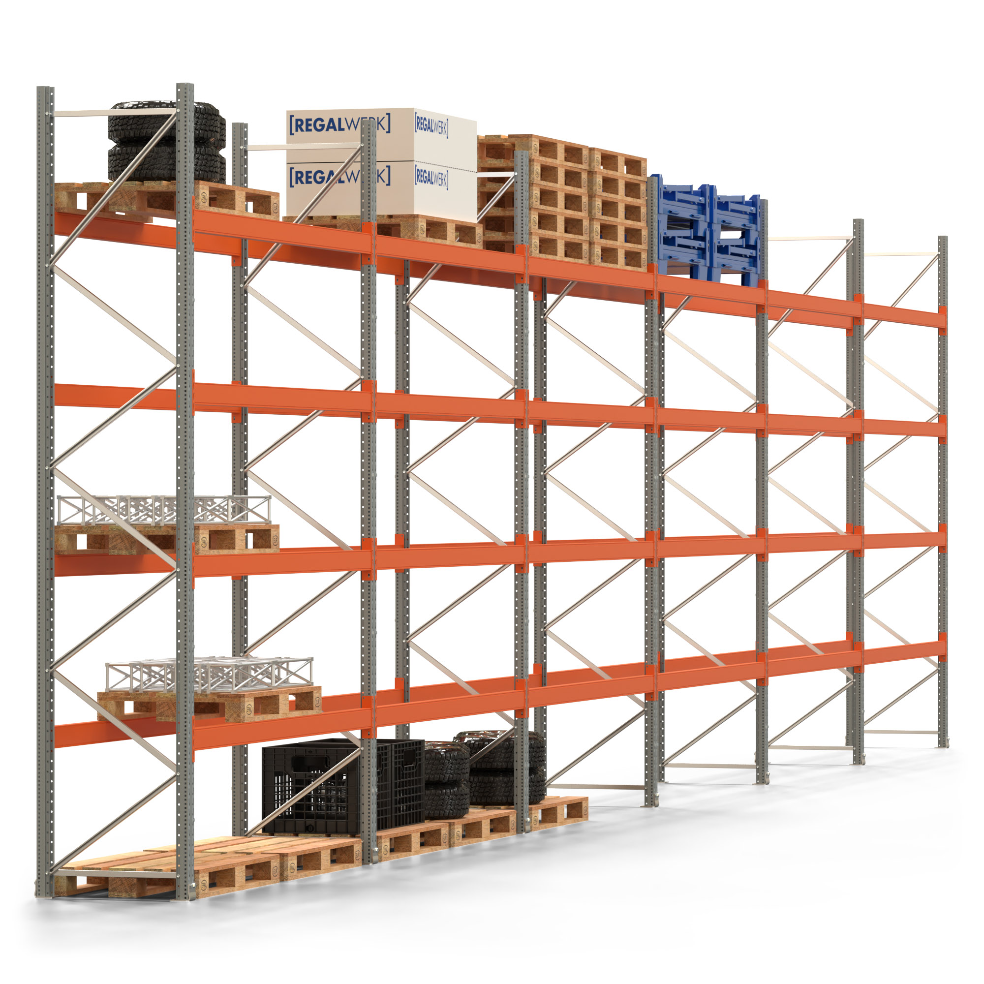 Palettenregal ARTUS - Breite 1679,5 cm - Höhe 400 cm - Tiefe 80 cm - 4 Träger-Ebenen - Fachlast 2000 kg - 60 Palettenstellplätze