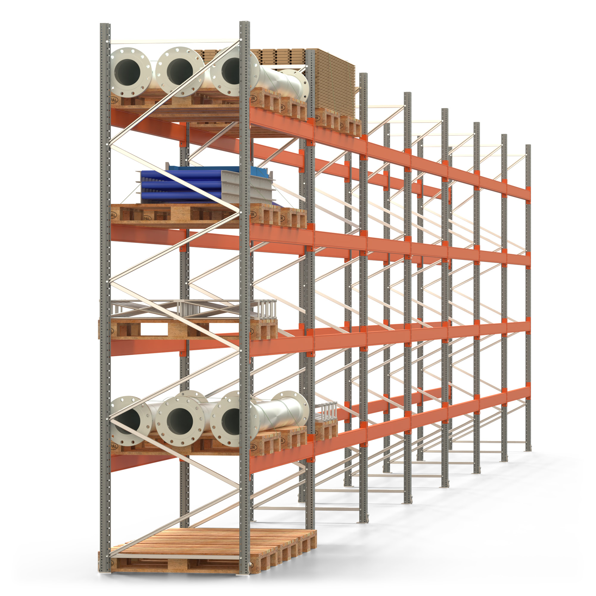 Palettenregal ARTUS - Breite 1958 cm - Höhe 400 cm - Tiefe 110 cm - 4 Träger-Ebenen - Fachlast 2325 kg - 105 Palettenstellplätze