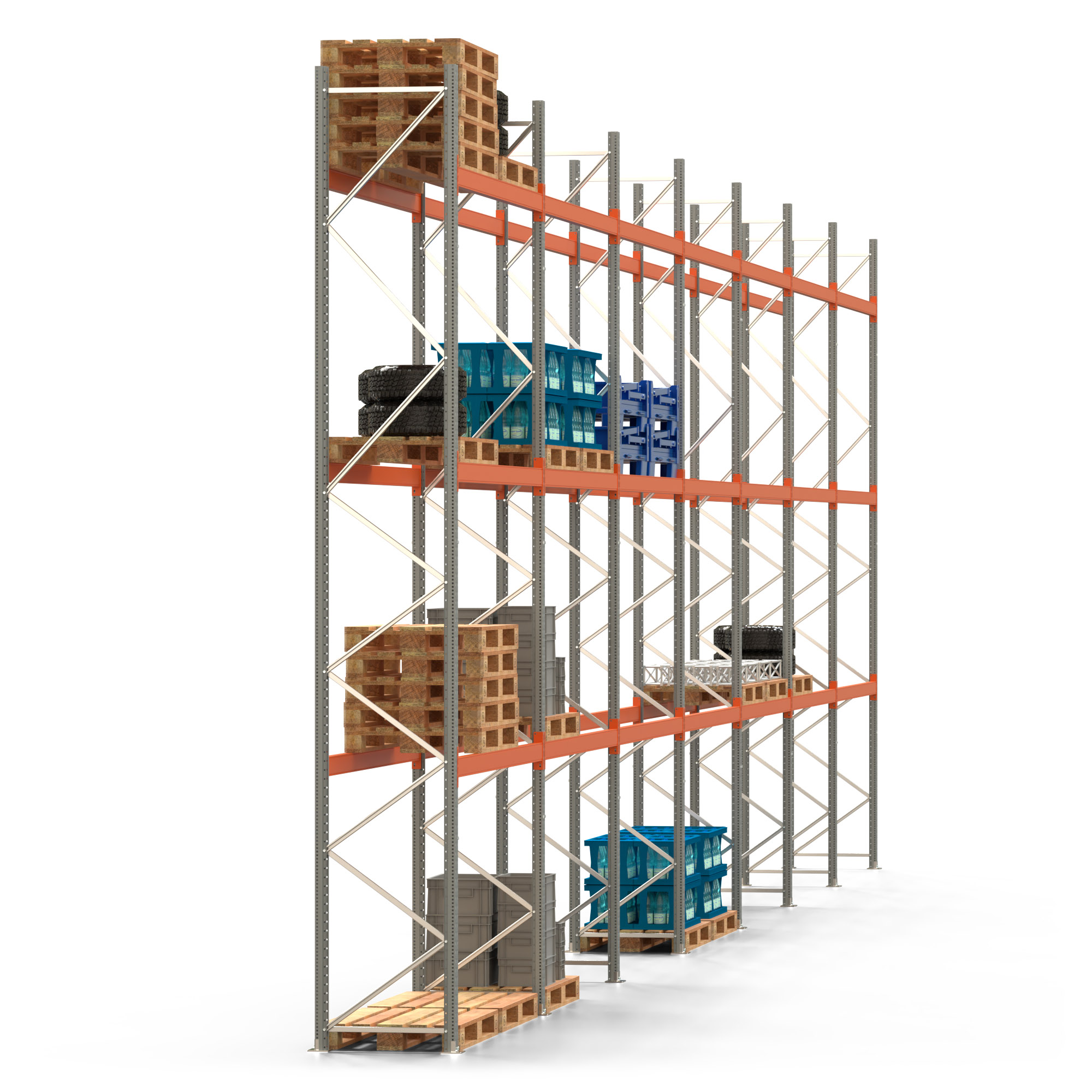 Palettenregal ARTUS - Breite 1958 cm - Höhe 550 cm - Tiefe 80 cm - 3 Träger-Ebenen - Fachlast 2000 kg - 56 Palettenstellplätze