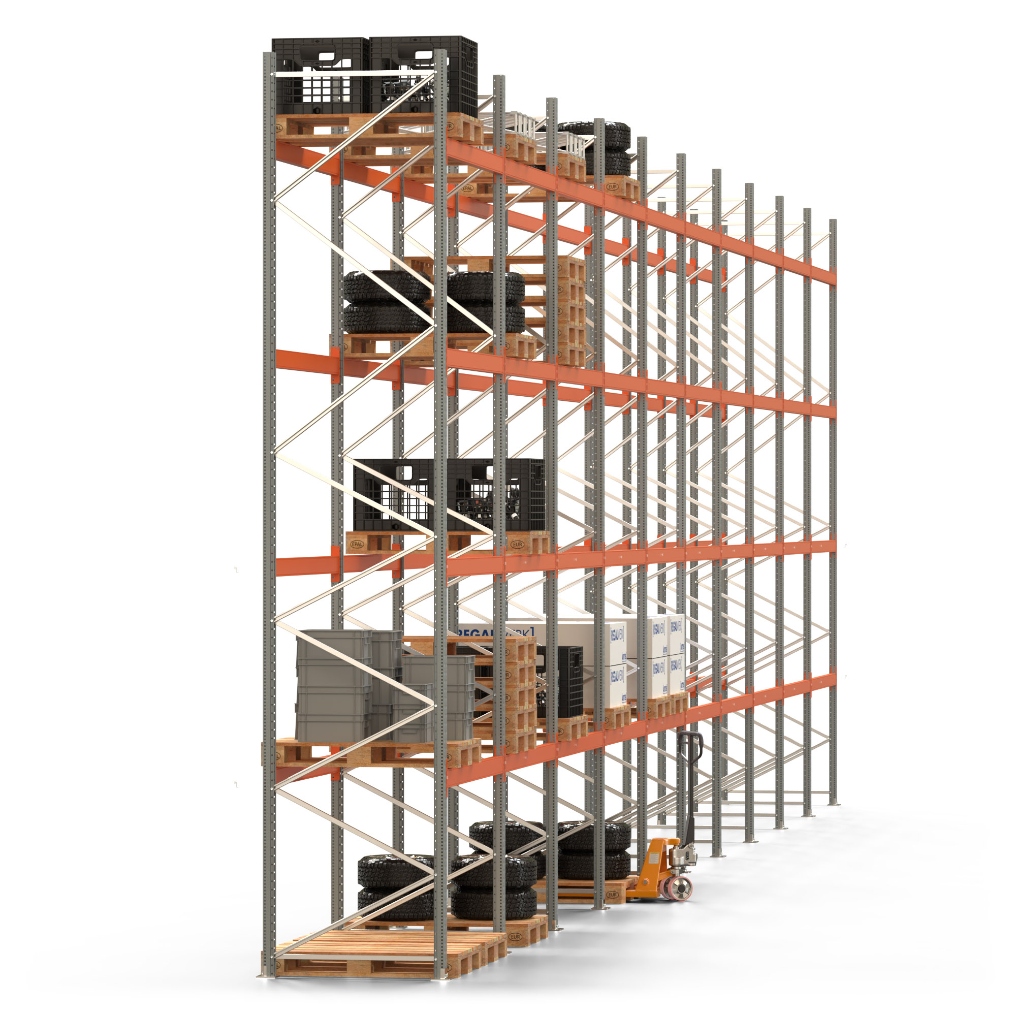 Palettenregal ARTUS - Breite 1993,5 cm - Höhe 550 cm - Tiefe 110 cm - Fachlast 2000 kg - 100 Palettenstellplätze