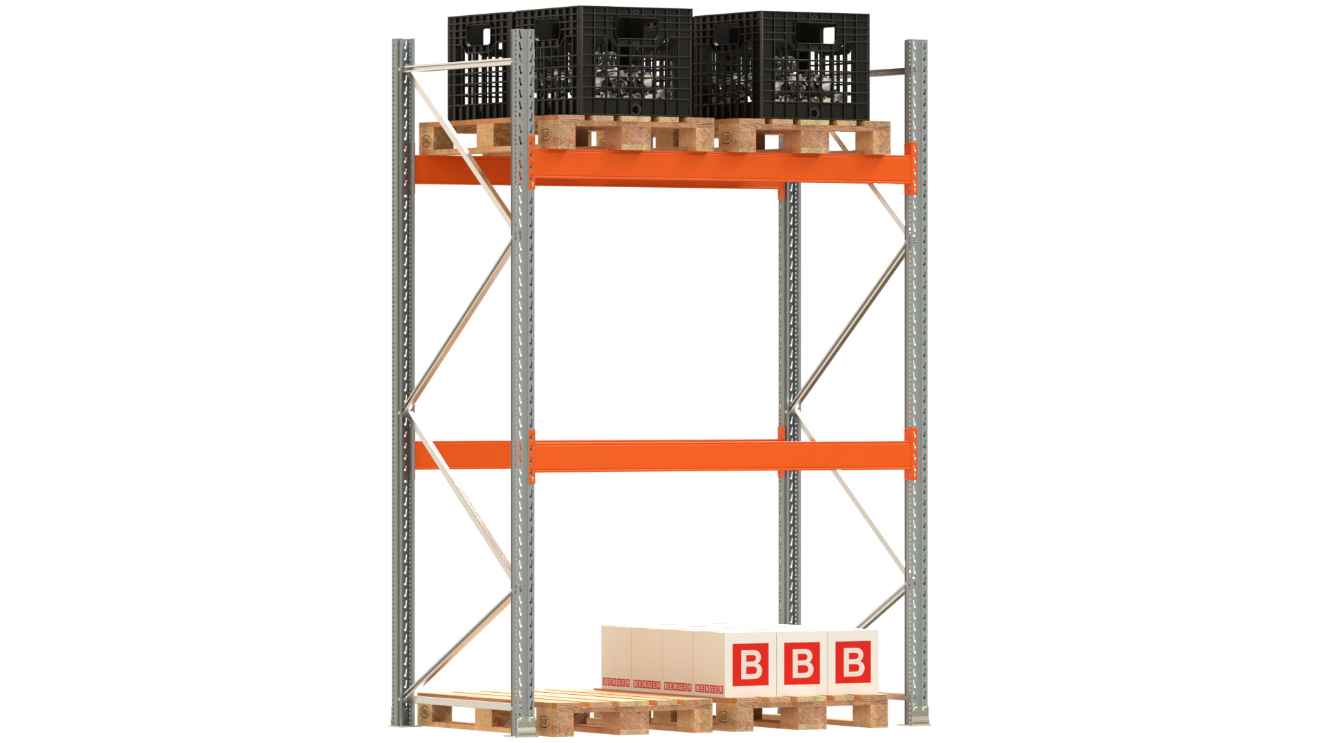 Palettenregal ARTUS - Breite 207 cm - Höhe 300 cm - Tiefe 110 cm - 2 Träger-Ebenen - Fachlast 3000 kg - 6 Palettenstellplätze