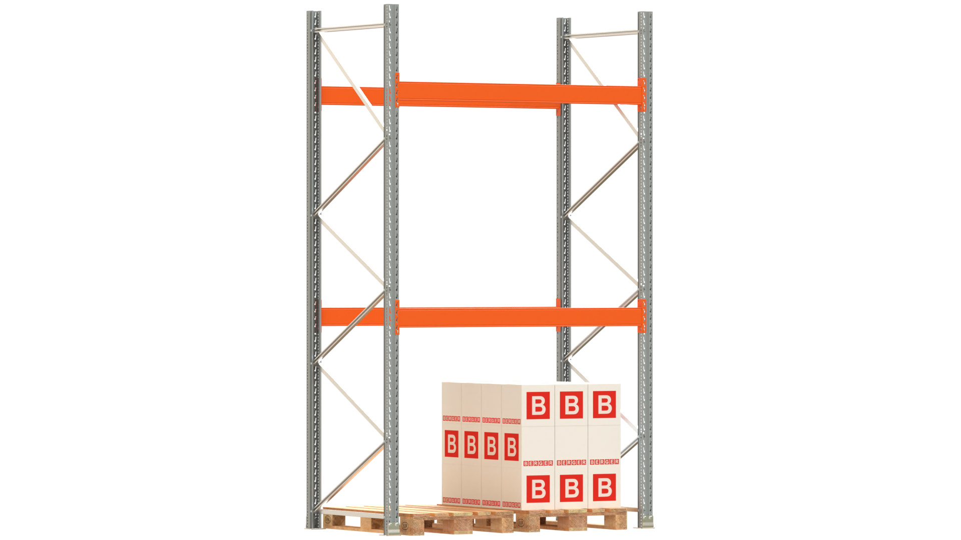 Palettenregal ARTUS - Breite 207 cm - Höhe 350 cm - Tiefe 110 cm - 2 Träger-Ebenen - Fachlast 3000 kg - 6 Palettenstellplätze