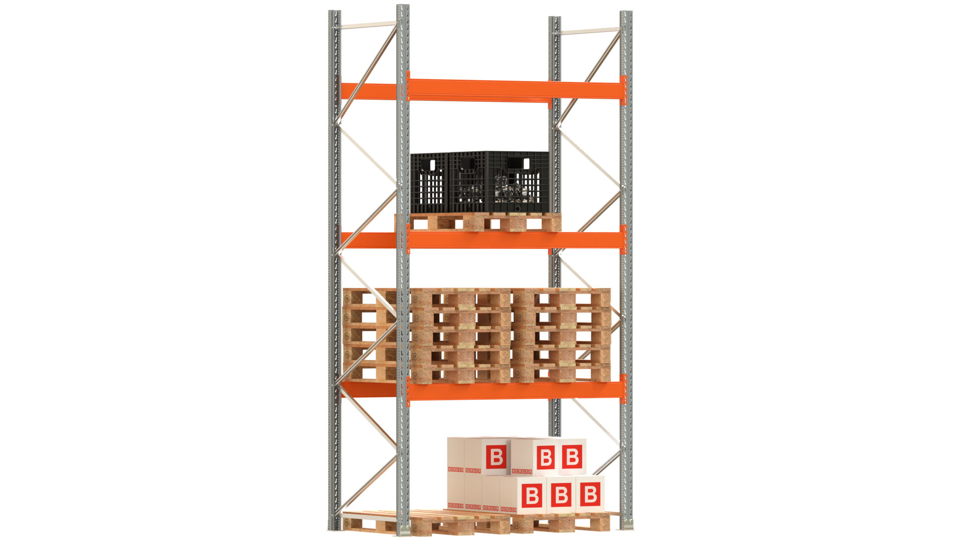 Palettenregal ARTUS - Breite 207 cm - Höhe 400 cm - Tiefe 110 cm - 3 Träger-Ebenen - Fachlast 3000 kg - 8 Palettenstellplätze