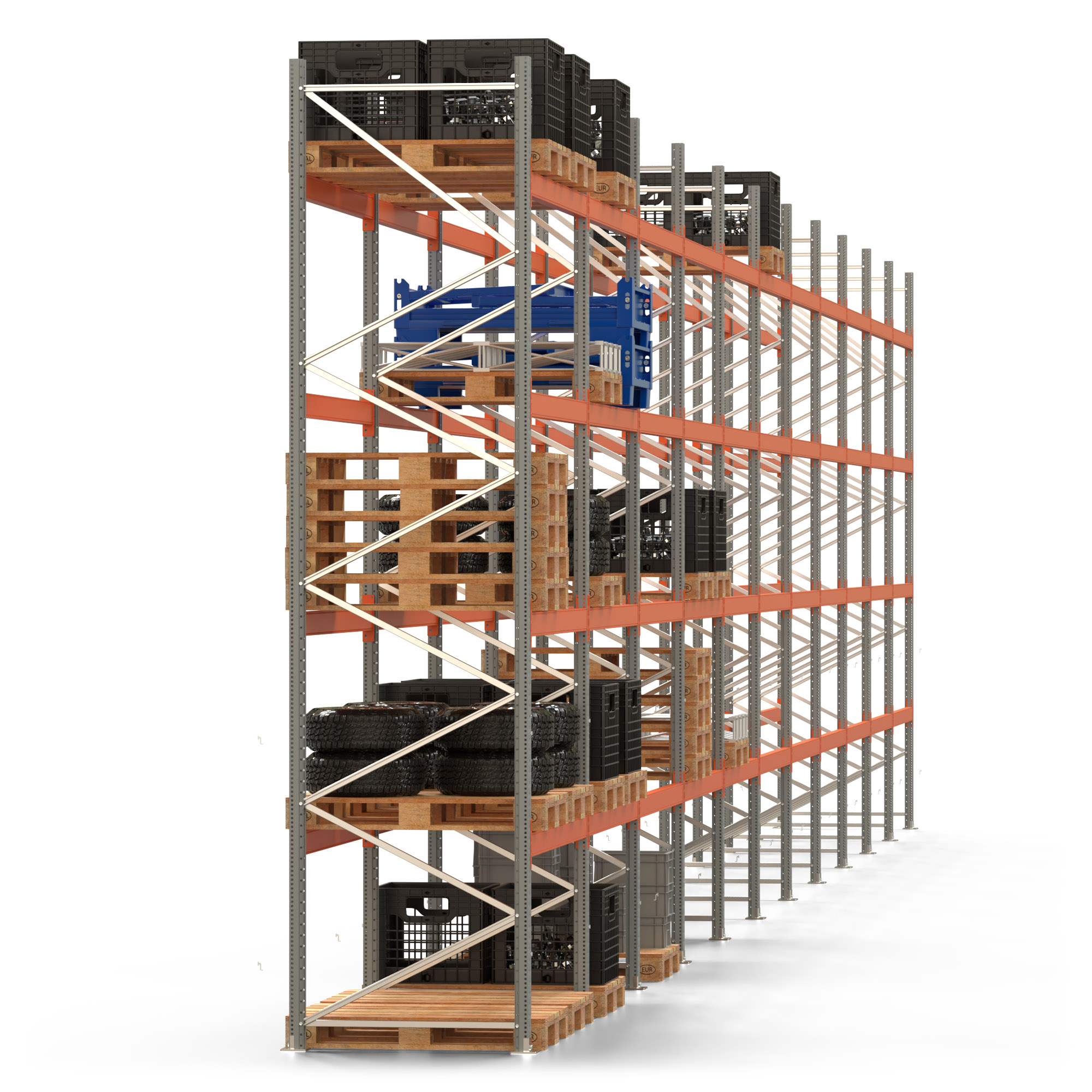 Palettenregal ARTUS - Breite 2192 cm - Höhe 450 cm - Tiefe 110 cm - 4 Träger-Ebenen - Fachlast 2000 kg - 110 Palettenstellplätze