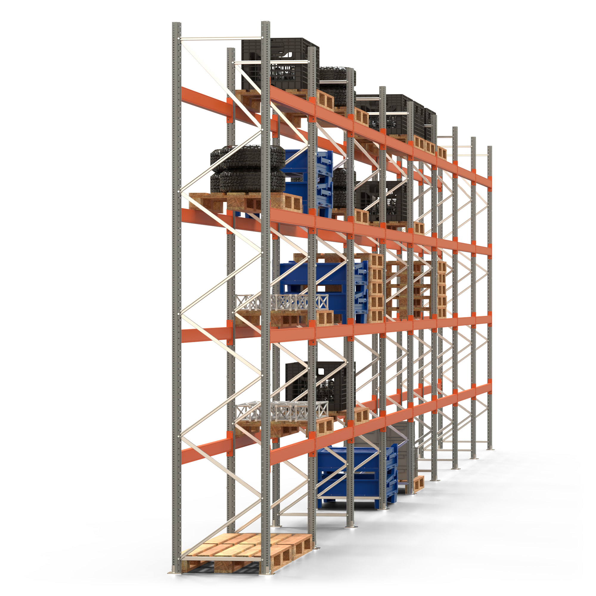 Palettenregal ARTUS - Breite 2236,5 cm - Höhe 450 cm - Tiefe 80 cm - 4 Träger-Ebenen - Fachlast 2000 kg - 80 Palettenstellplätze
