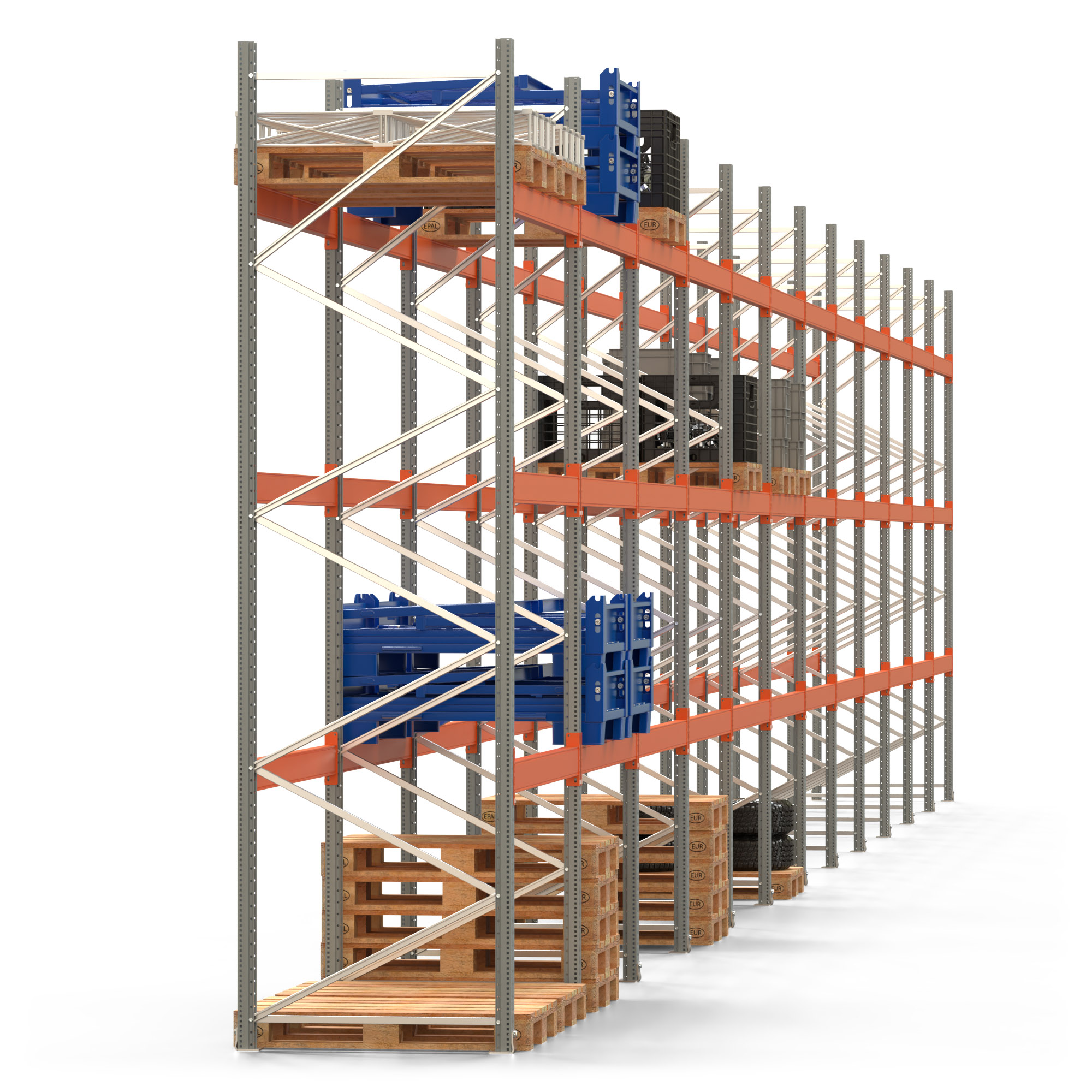 Palettenregal ARTUS - Breite 2390,5 cm - Höhe 400 cm - Tiefe 110 cm - Fachlast 3000 kg - 96 Palettenstellplätze