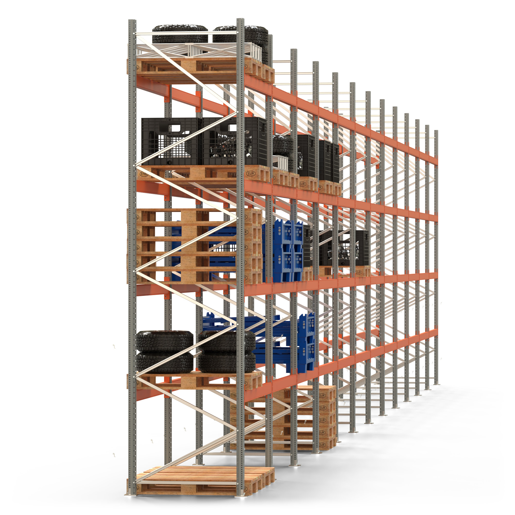 Palettenregal ARTUS - Breite 2390,5 cm - Höhe 450 cm - Tiefe 110 cm - Fachlast 2000 kg - 120 Palettenstellplätze