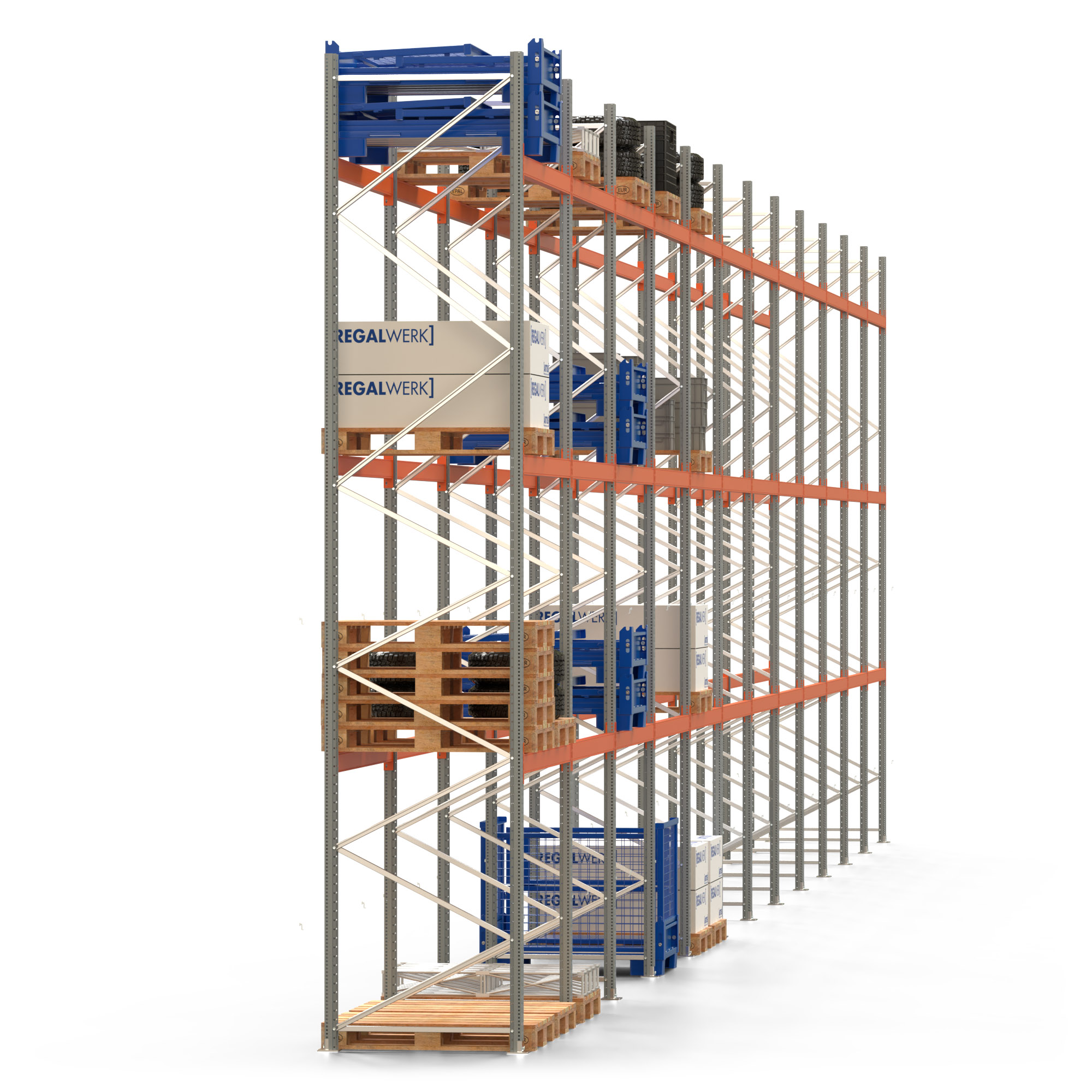 Palettenregal ARTUS - Breite 2390,5 cm - Höhe 550 cm - Tiefe 110 cm - Fachlast 2000 kg - 96 Palettenstellplätze