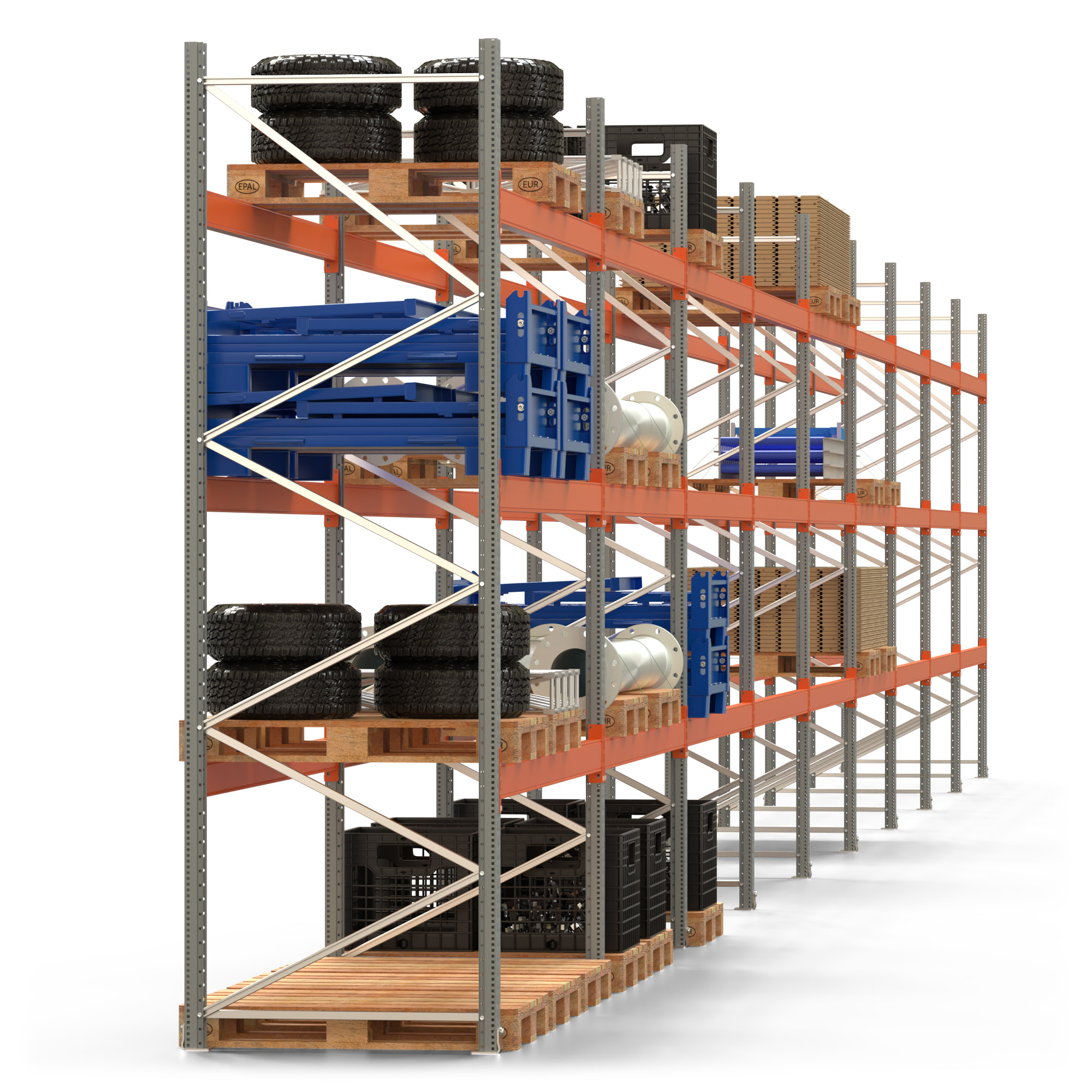 Palettenregal ARTUS - Breite 2515 cm - Höhe 350 cm - Tiefe 110 cm - Fachlast 3000 kg - 108 Palettenstellplätze