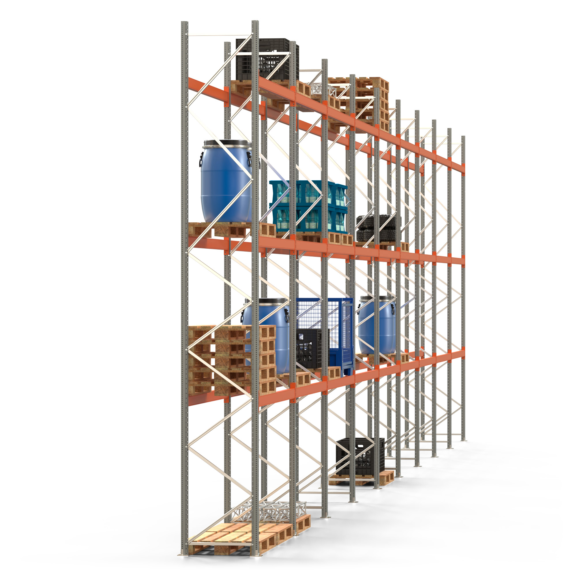 Palettenregal ARTUS - Breite 2515 cm - Höhe 550 cm - Tiefe 80 cm - 3 Träger-Ebenen - Fachlast 2000 kg - 72 Palettenstellplätze